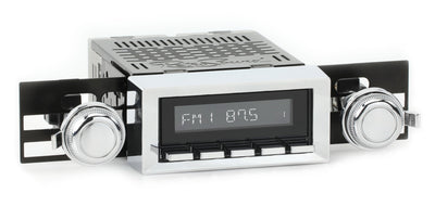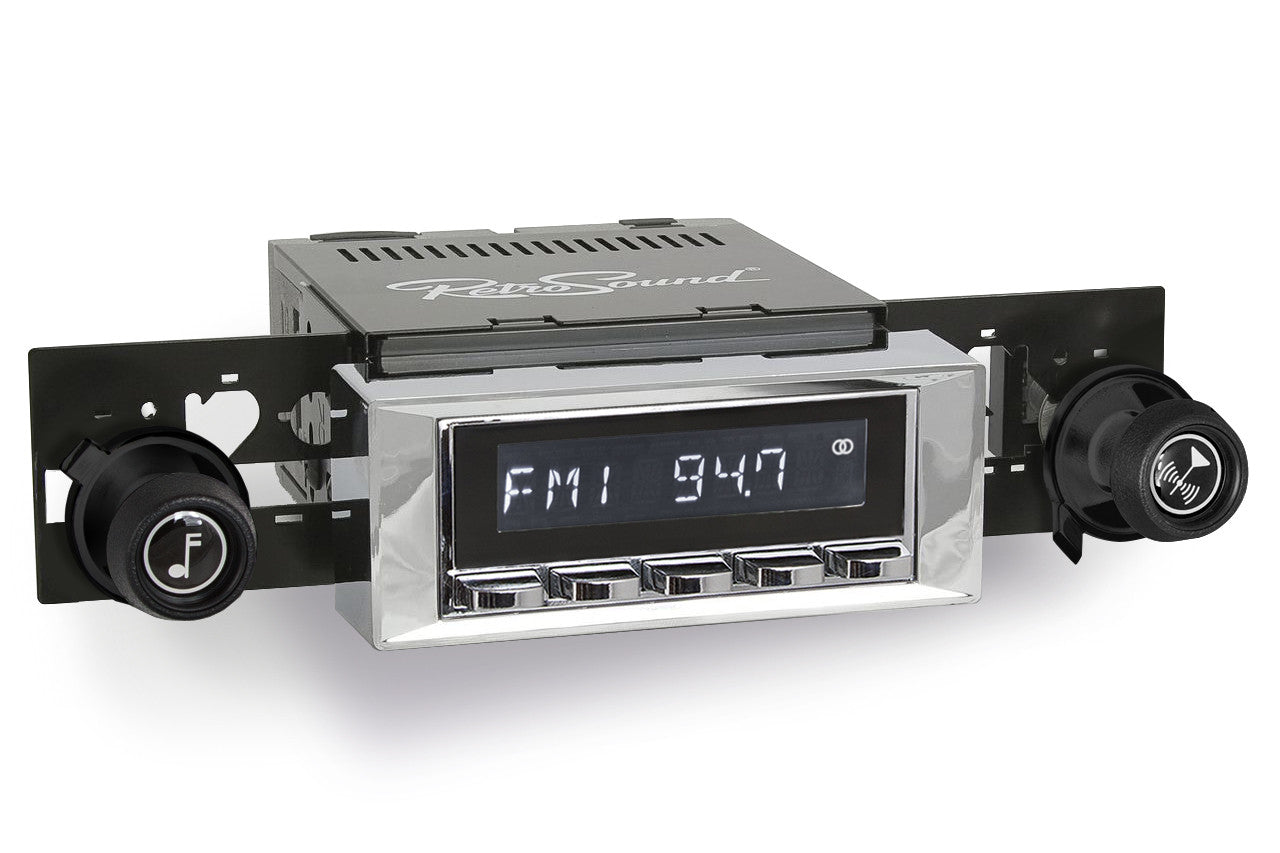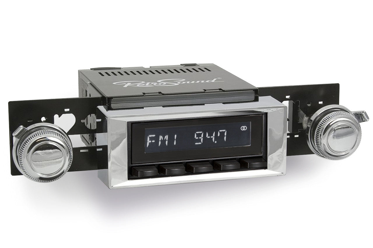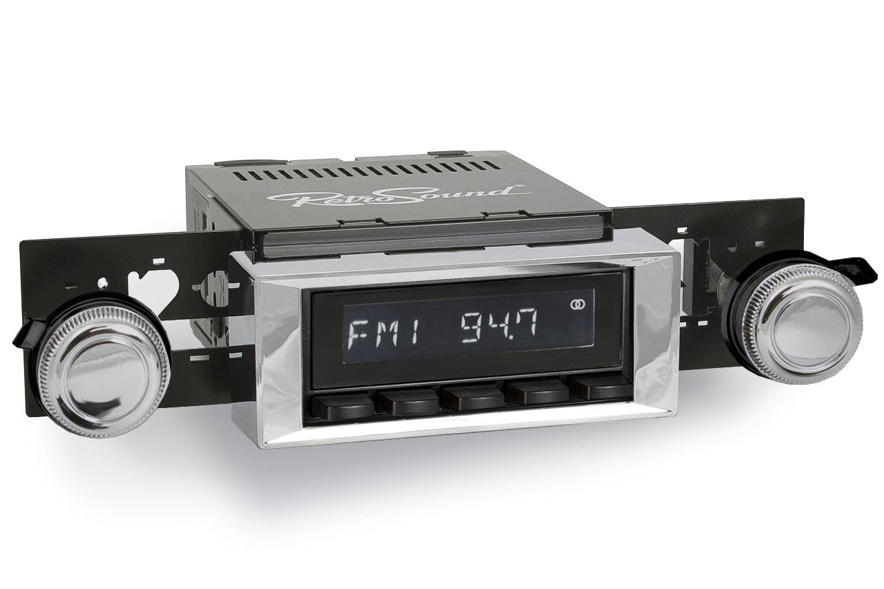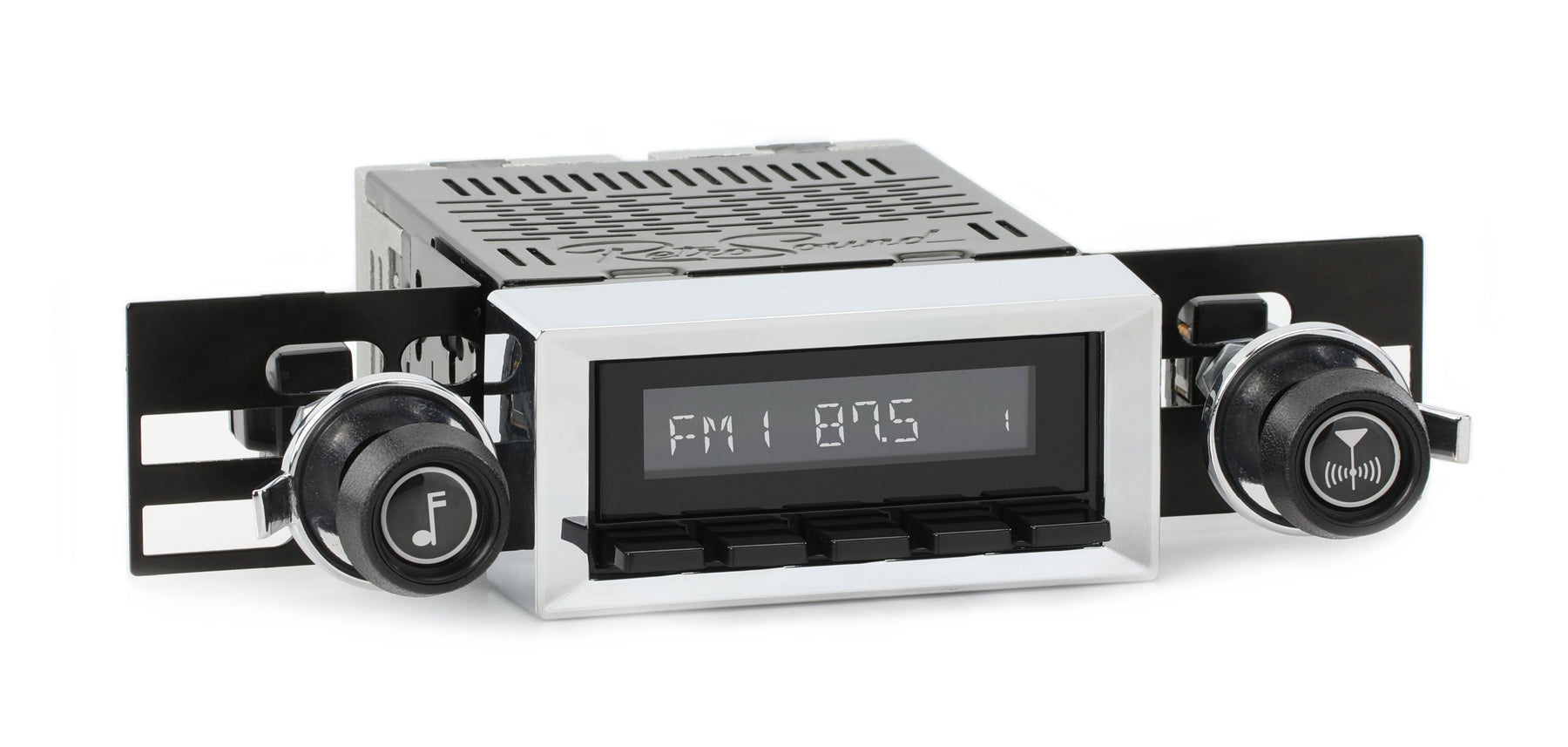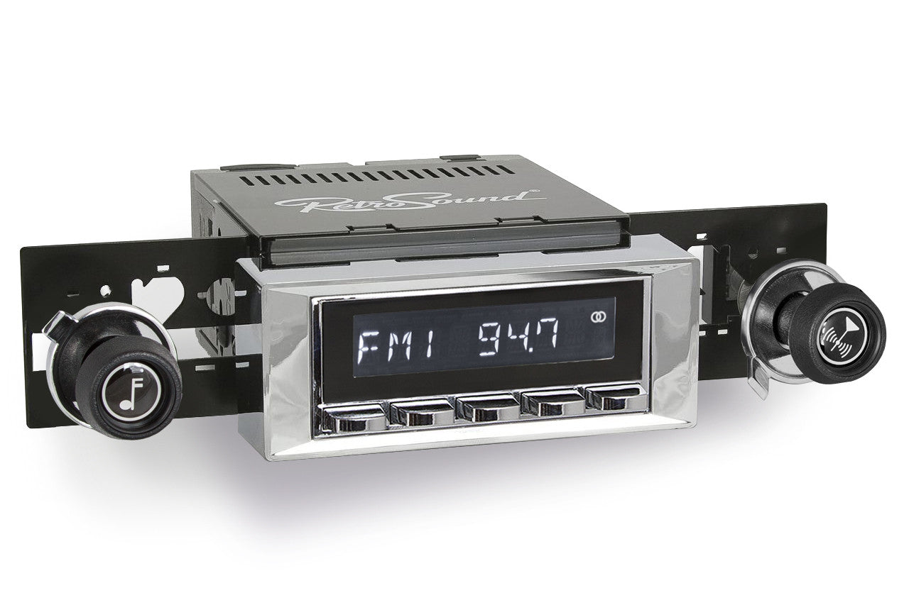 For a factory-like fit, RetroRadio includes RetroSound’s patented InfiniMount™ Brackets that can be adjusted during installation to achieve the proper width and depth of control shafts and a flush fitment of the Radio Face.