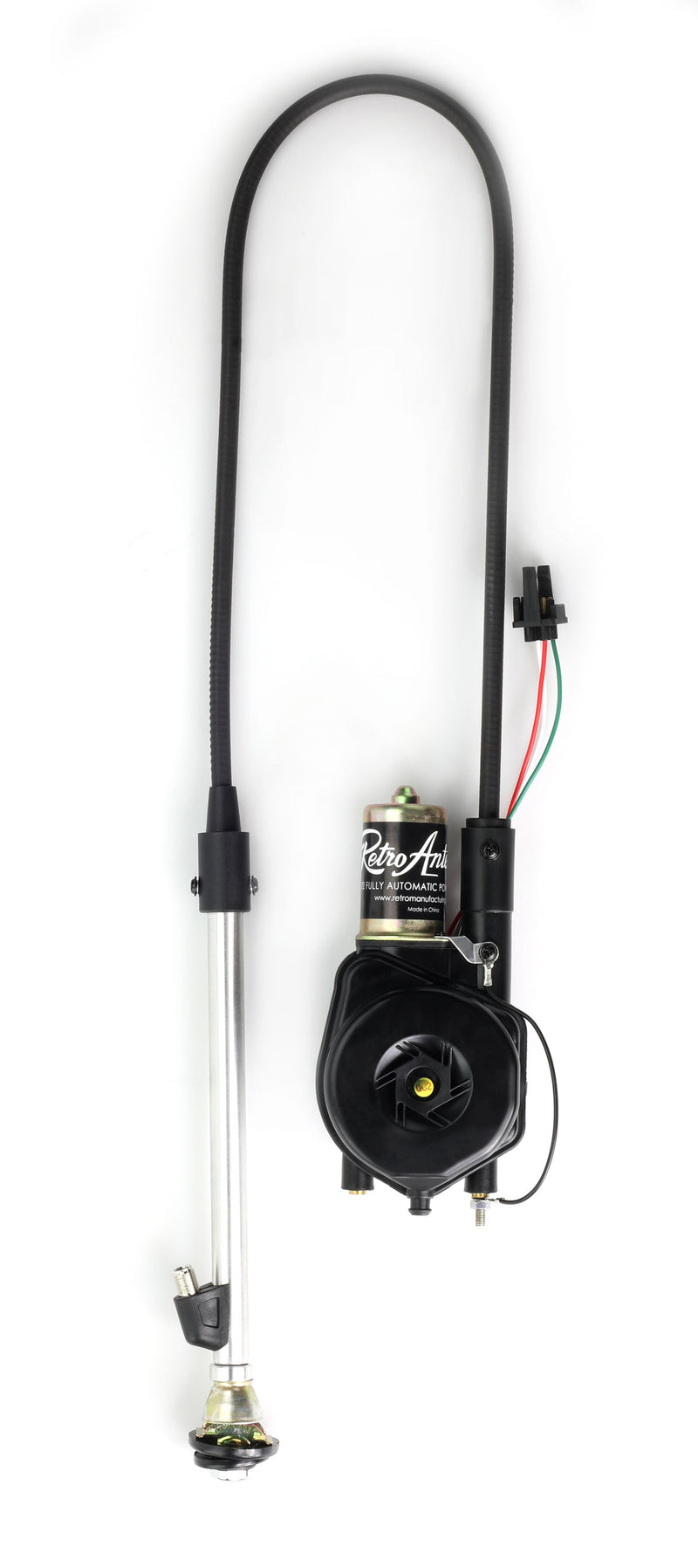 Upgrade your classic car with the RetroSound® PA04 Fully Automatic Power Antenna – a sleek, modern solution that blends seamlessly into your vintage ride. This universal-fit antenna extends when your radio powers on and retracts when turned off, offering smooth operation and enhanced convenience. The remote motor design allows for flexible placement in vehicles with limited mounting space, while the all-metal construction ensures durability in any weather.