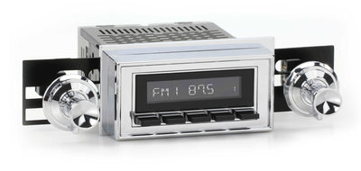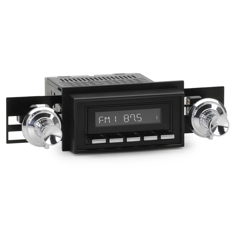 For a factory-like fit, RetroRadio includes RetroSound’s patented InfiniMount™ Brackets that can be adjusted during installation to achieve the proper width and depth of control shafts and a flush fitment of the Radio Face.