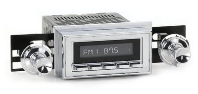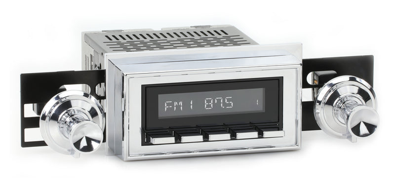 For a factory-like fit, RetroRadio includes RetroSound’s patented InfiniMount™ Brackets that can be adjusted during installation to achieve the proper width and depth of control shafts and a flush fitment of the Radio Face.