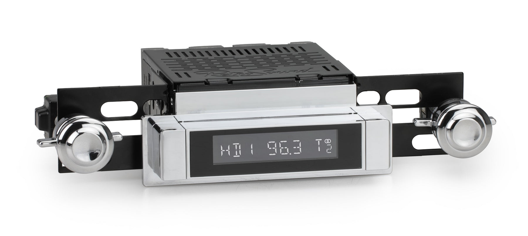 The RetroSound® Apache is the most technologically-advanced radio ever made for your vintage 1954 Chevrolet Truck, and also the only with built-in Bluetooth® connectivity for hands-free phone calls and wireless audio streaming. The new Apache features a 32,000 color display to customize your radio to your truck's interior. A single USB port for flash drive plus two standard auxiliary inputs are included. The Apache has a built-in 25 watts x 4 channel power amplifier as well as front and rear RCA pre-outs, that would allow you to add external amplifiers. It mounts seamlessly into your Chevrolet/GMC truck thanks to RetroSound®'s patented InfiniMount adjustable bracket system.