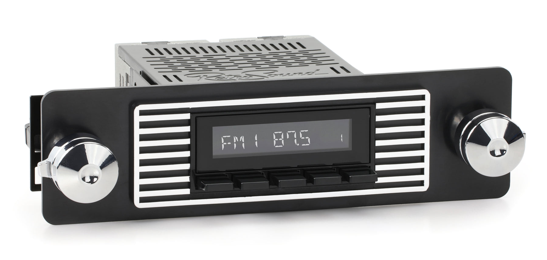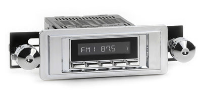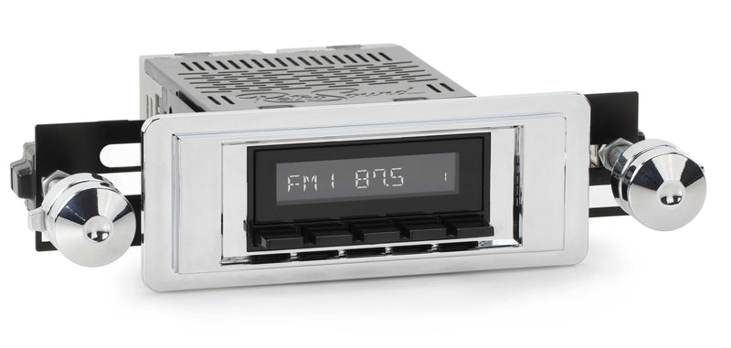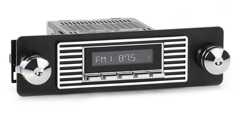 For a factory-like fit, RetroRadio includes RetroSound’s patented InfiniMount™ Brackets that can be adjusted during installation to achieve the proper width and depth of control shafts and a flush fitment of the Radio Face.