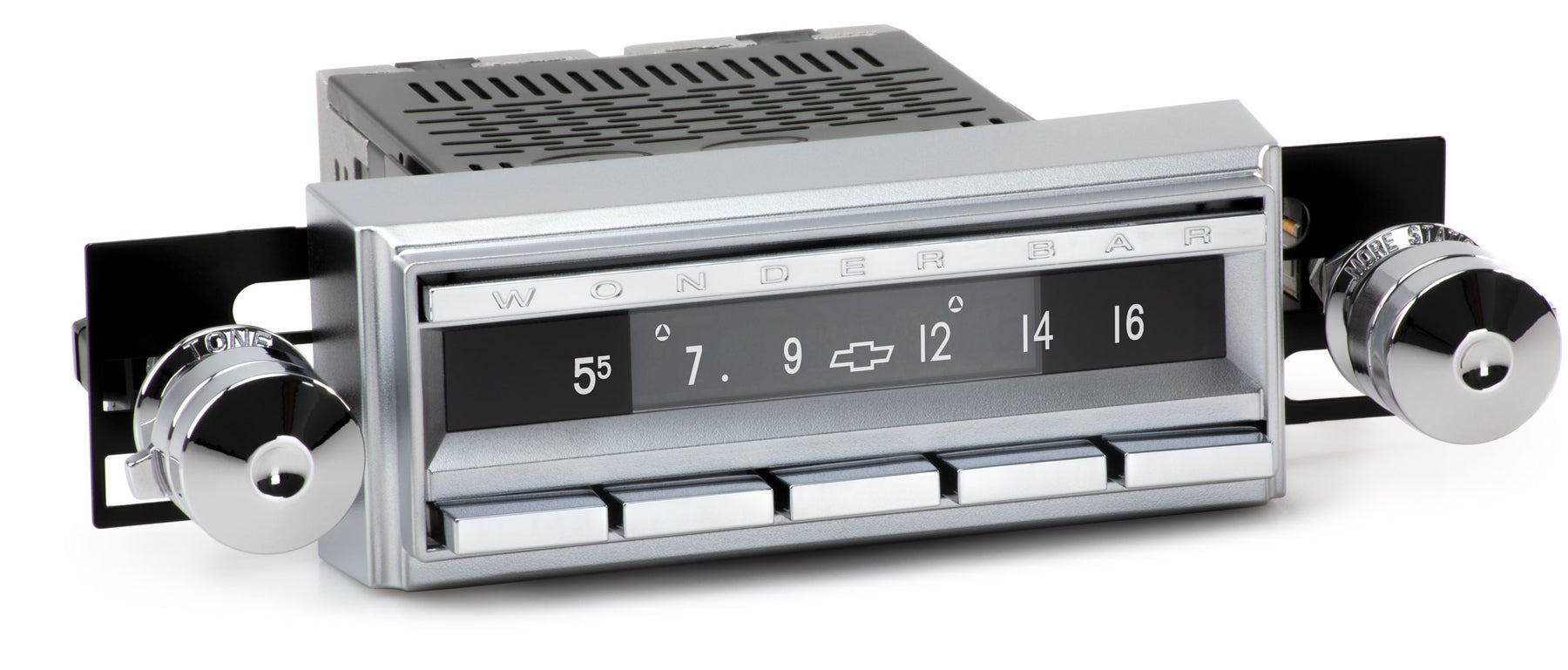 RetroSound®'s Wonder Bar® is the most technologically-advanced radio ever made for your classic 1955-56 Chevrolet Bel Air. The compact size installs easily and discreetly behind the dash for a fully integrated look. Wonder Bar 1 is now available with your choice of 3 different feature sets.