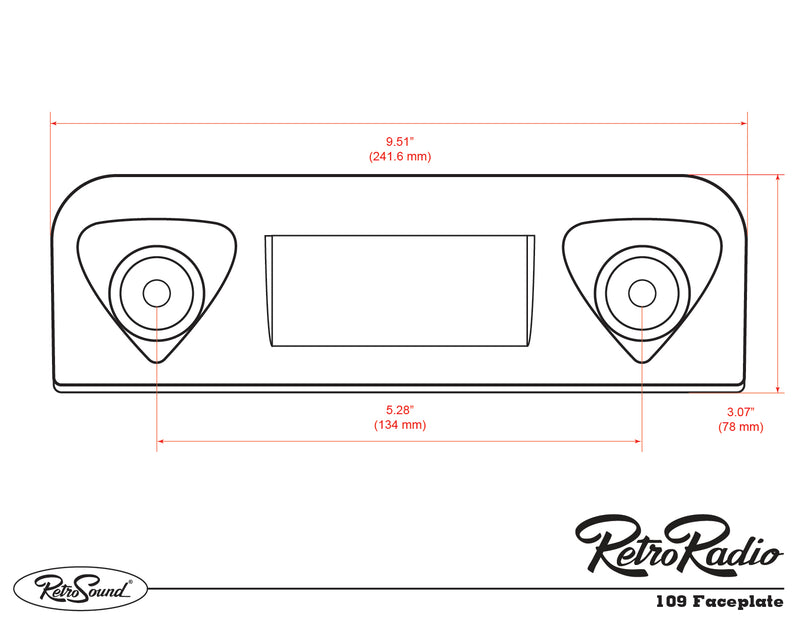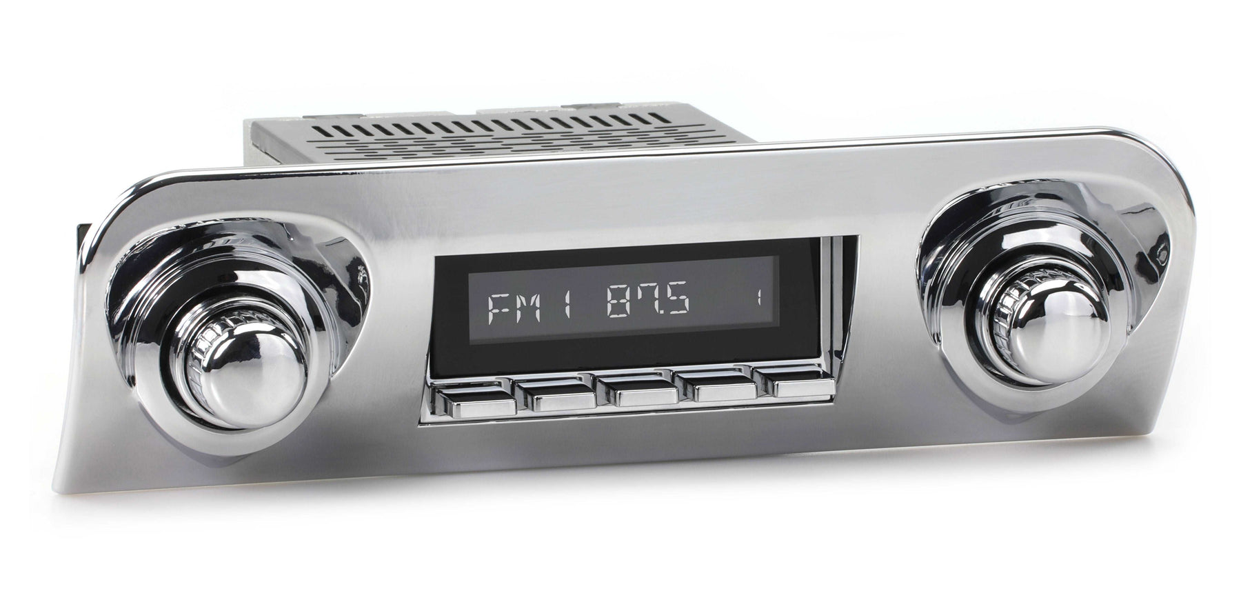For a factory-like fit, RetroRadio includes RetroSound’s patented InfiniMount™ Brackets that can be adjusted during installation to achieve the proper width and depth of control shafts and a flush fitment of the Radio Face.
