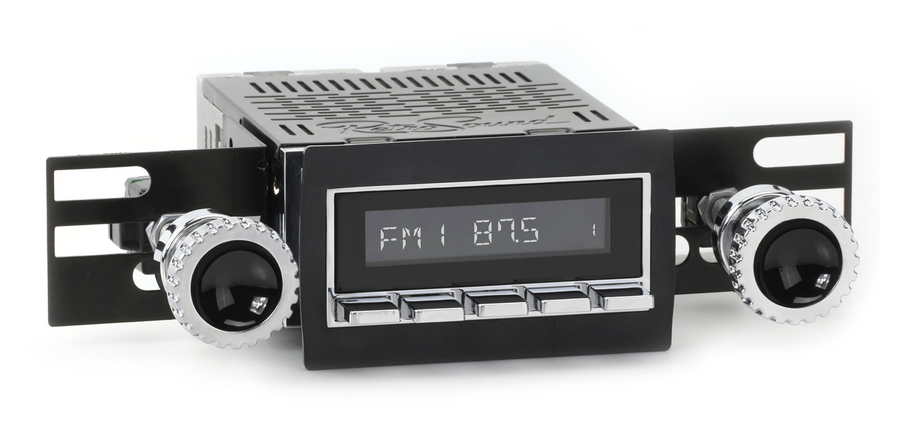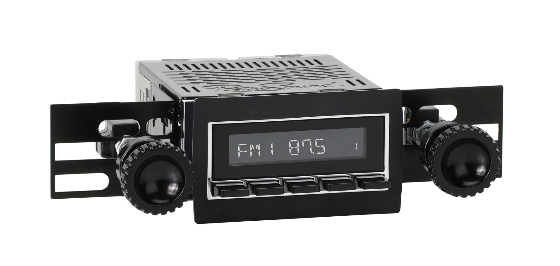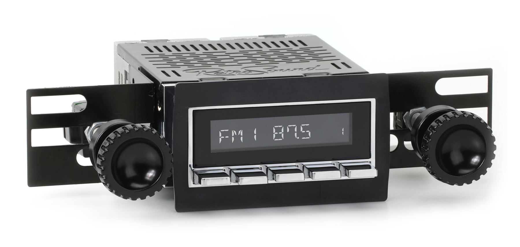 For a factory-like fit, RetroRadio includes RetroSound’s patented InfiniMount™ Brackets that can be adjusted during installation to achieve the proper width and depth of control shafts and a flush fitment of the Radio Face.