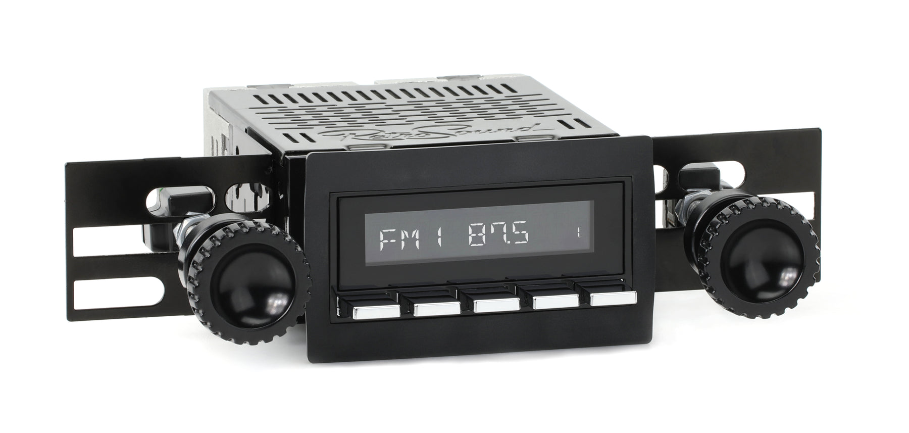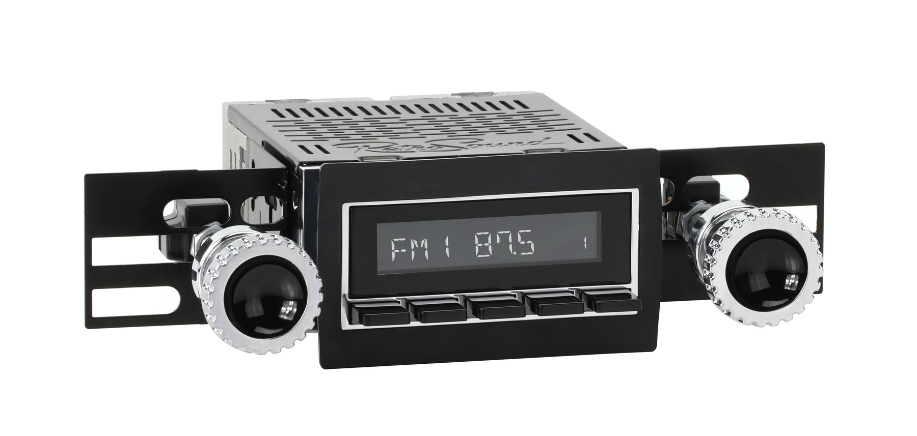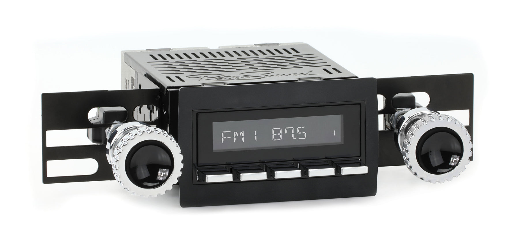For a factory-like fit, RetroRadio includes RetroSound’s patented InfiniMount™ Brackets that can be adjusted during installation to achieve the proper width and depth of control shafts and a flush fitment of the Radio Face.