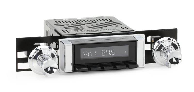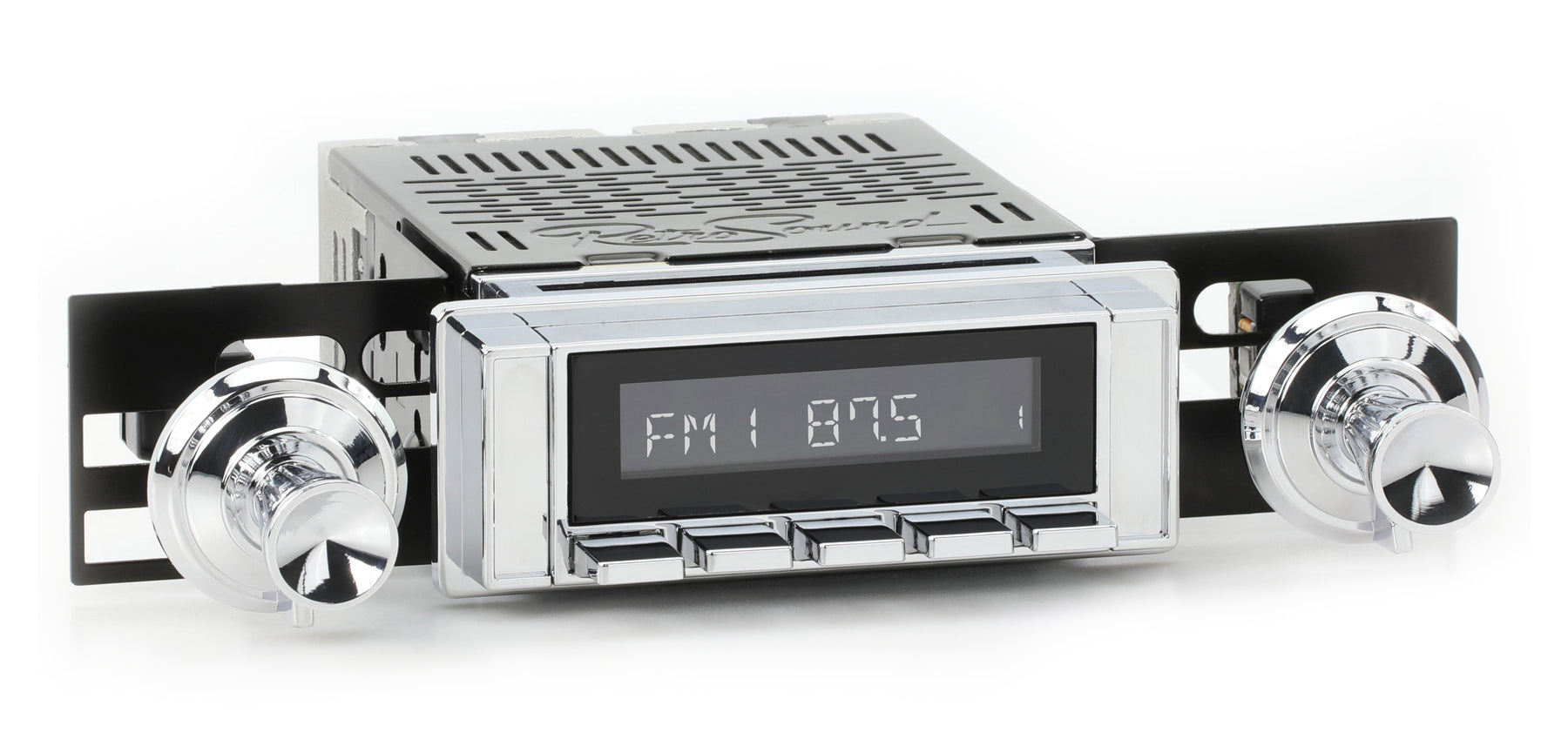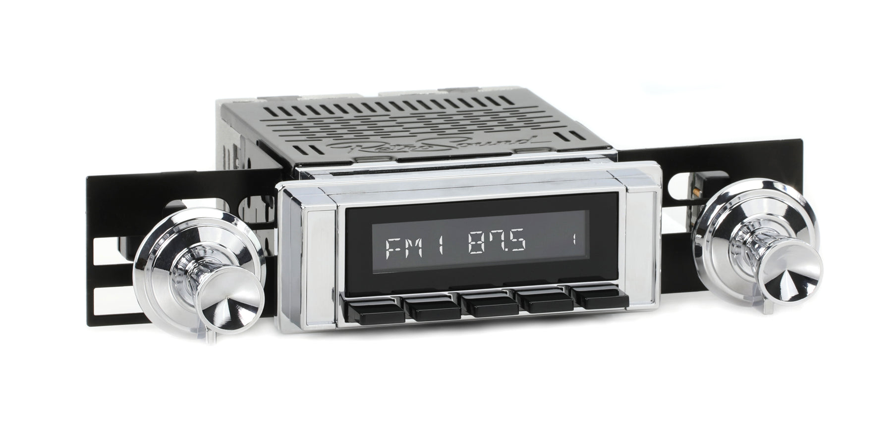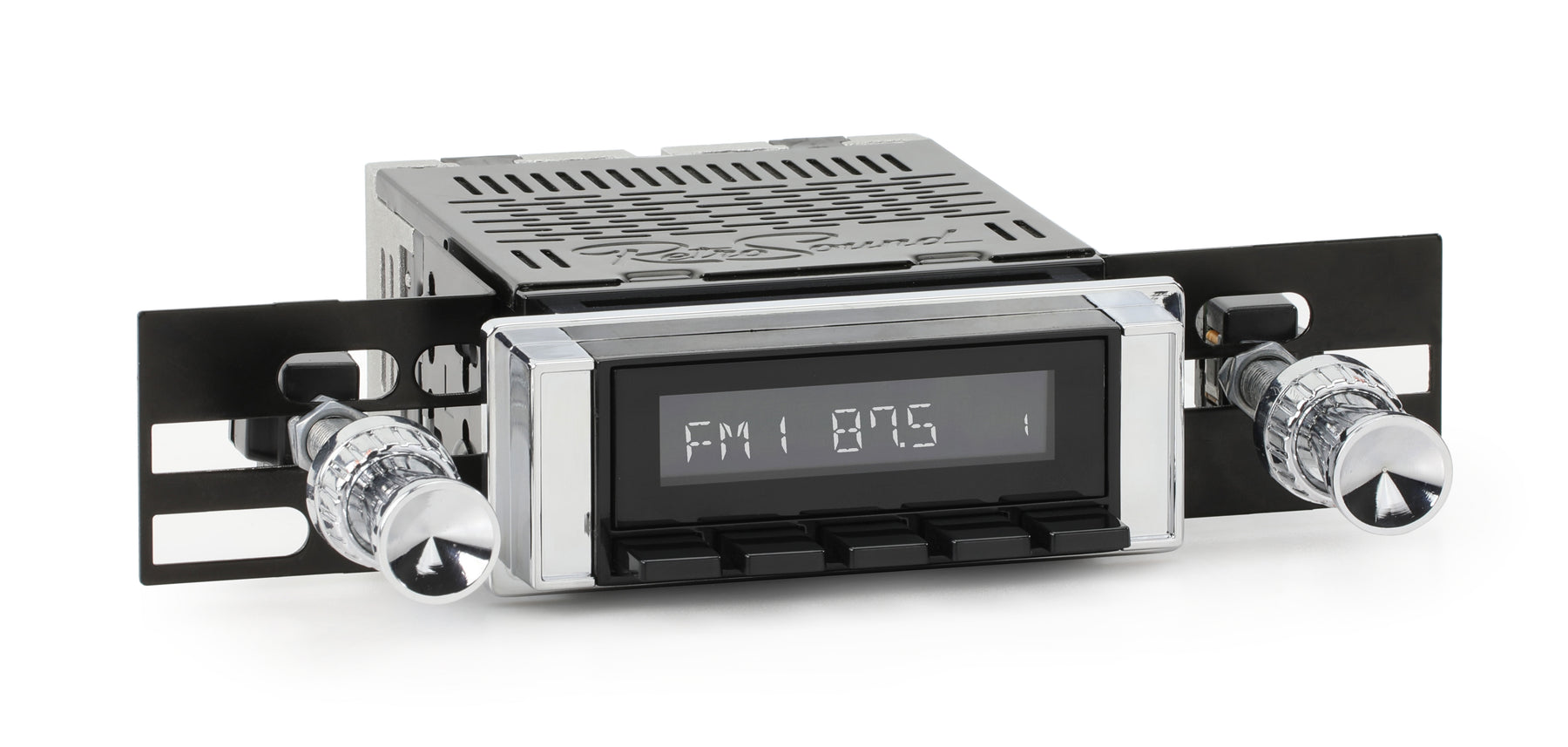 For a factory-like fit, RetroRadio includes RetroSound’s patented InfiniMount™ Brackets that can be adjusted during installation to achieve the proper width and depth of control shafts and a flush fitment of the Radio Face.