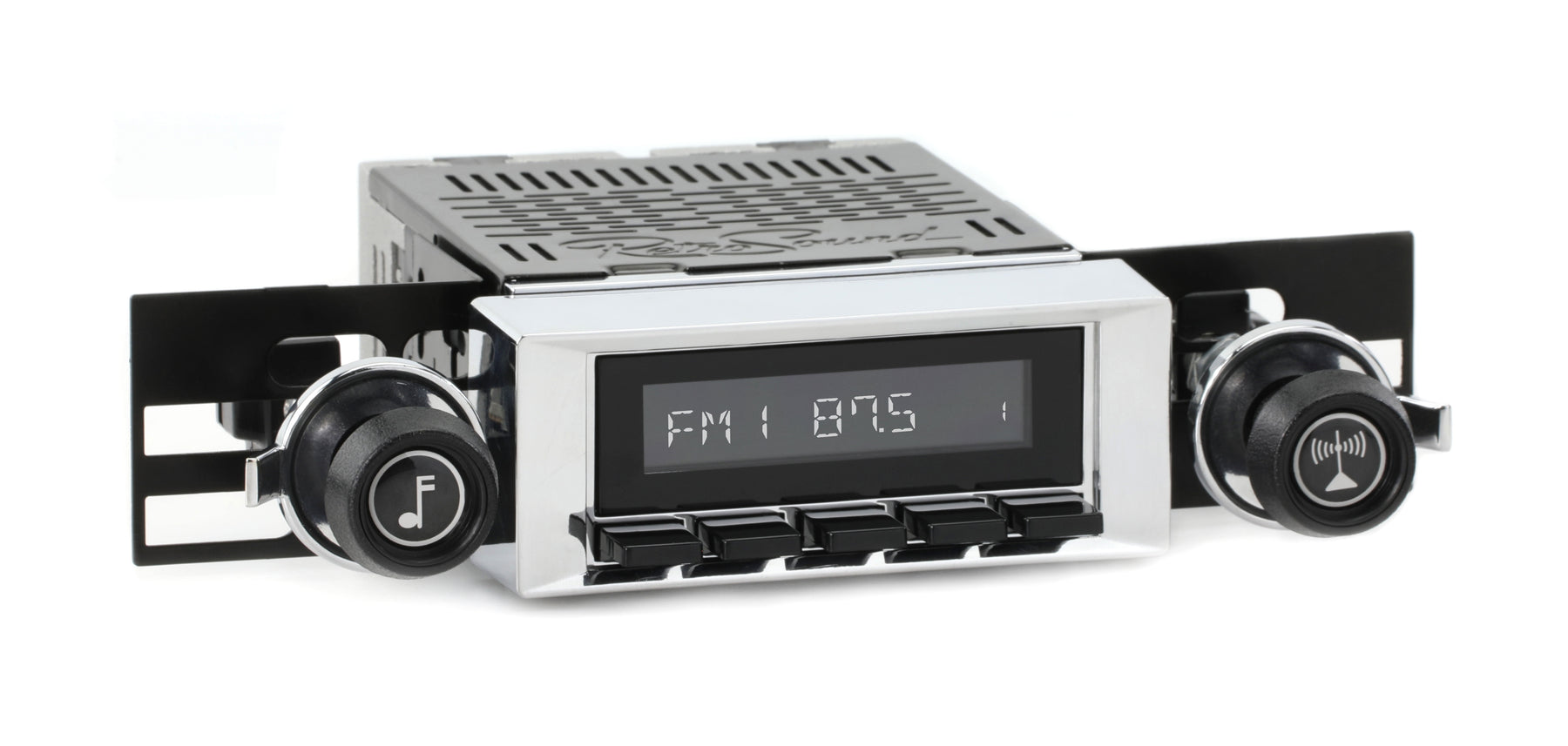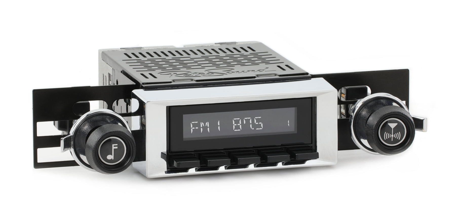 For a factory-like fit, RetroRadio includes RetroSound’s patented InfiniMount™ Brackets that can be adjusted during installation to achieve the proper width and depth of control shafts and a flush fitment of the Radio Face.