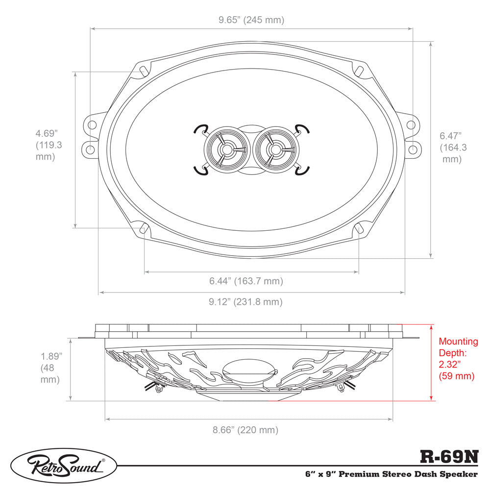 RetroSound R-69N Premium 6"x9" DVC Ultra-thin 2-way Dash Speaker