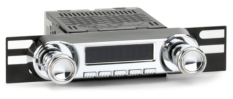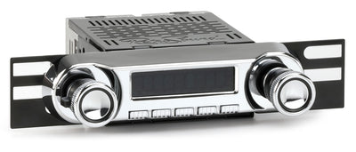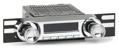 The RetroSound® Huntington is a direct-fit replacement radio for your classic 1966-77 Ford Bronco or 1961-66 Ford Truck. Huntington looks and fits like the original Ford factory radio, but boasts the most modern technological features. Bluetooth® connectivity is built in, for hands-free phone calls and wireless audio streaming. Huntington features a 32,000 color display to match the interior and dash lighting of your Ford F-Series Pickup. The Huntington includes a rear-mounted USB port for flash drives plus two standard auxiliary inputs. The Huntington has a built-in 25 watts x 4 channel power amplifier as well as front and rear RCA pre-outs, that allow the ability to add external amplifiers.