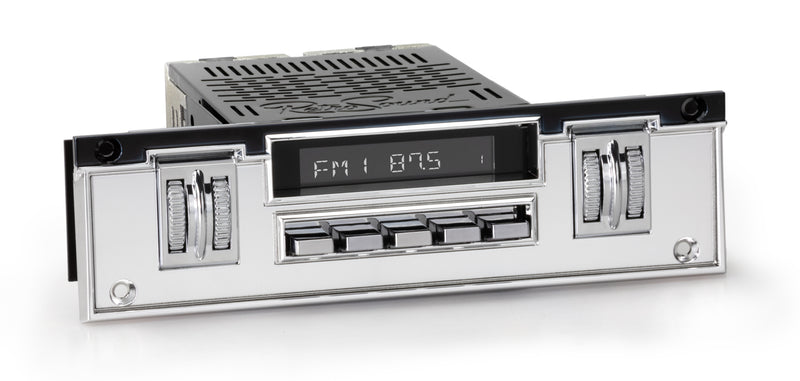RetroSound®'s Redondo-RT is the most technologically-advanced radio ever made for your classic 1967-70 Dodge Dart. With classic Mopar style thumb-roller controls, Redondo looks like the original factory radio, but includes all the features of a modern car stereo. The Redondo has separate radio display and push-button assemblies that are independently adjustable thanks to RetroSound's patented InfiniMount system. The compact size installs easily and discreetly behind the dash for a fully integrated look. This is the most technologically advanced radio ever produced for vintage Mopar vehicles.