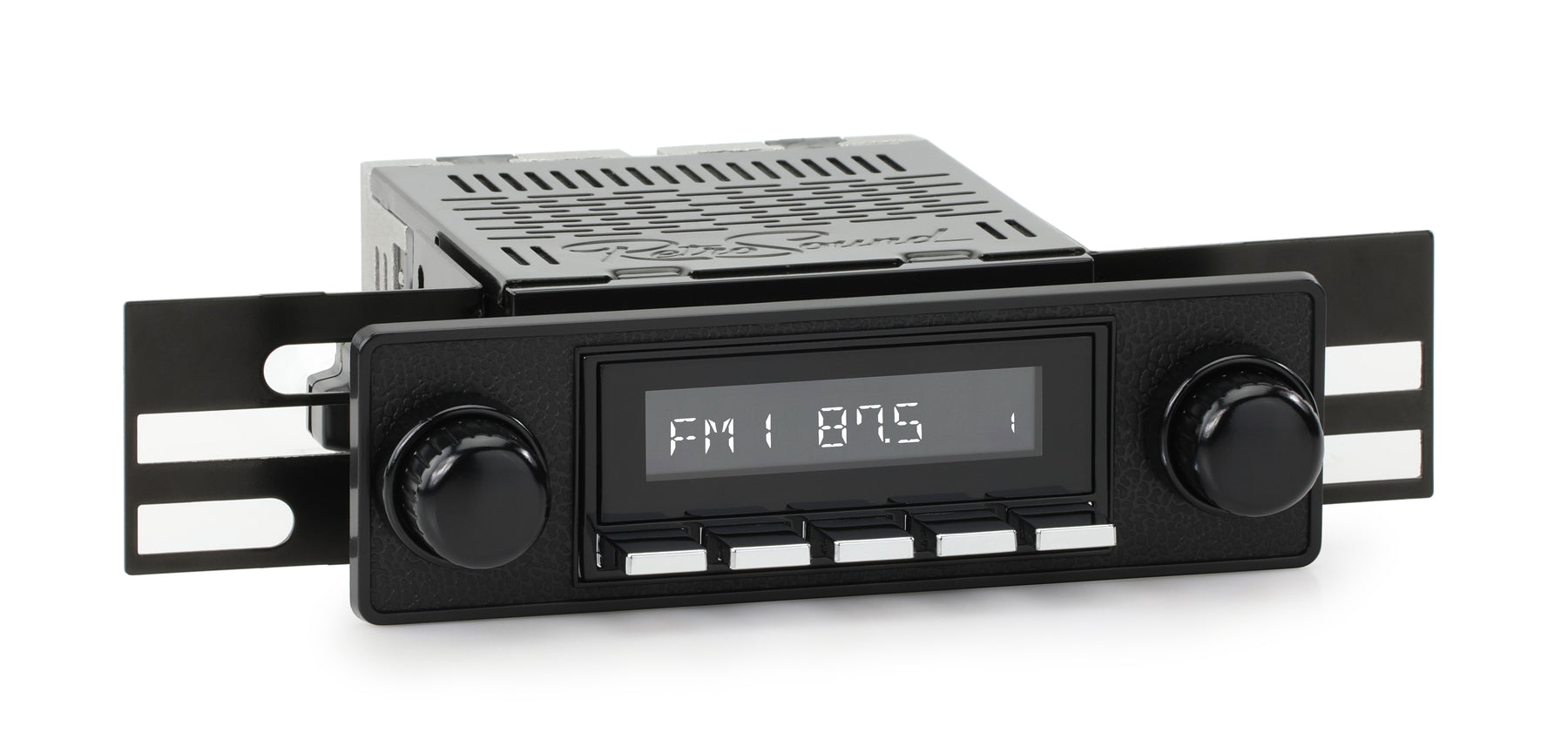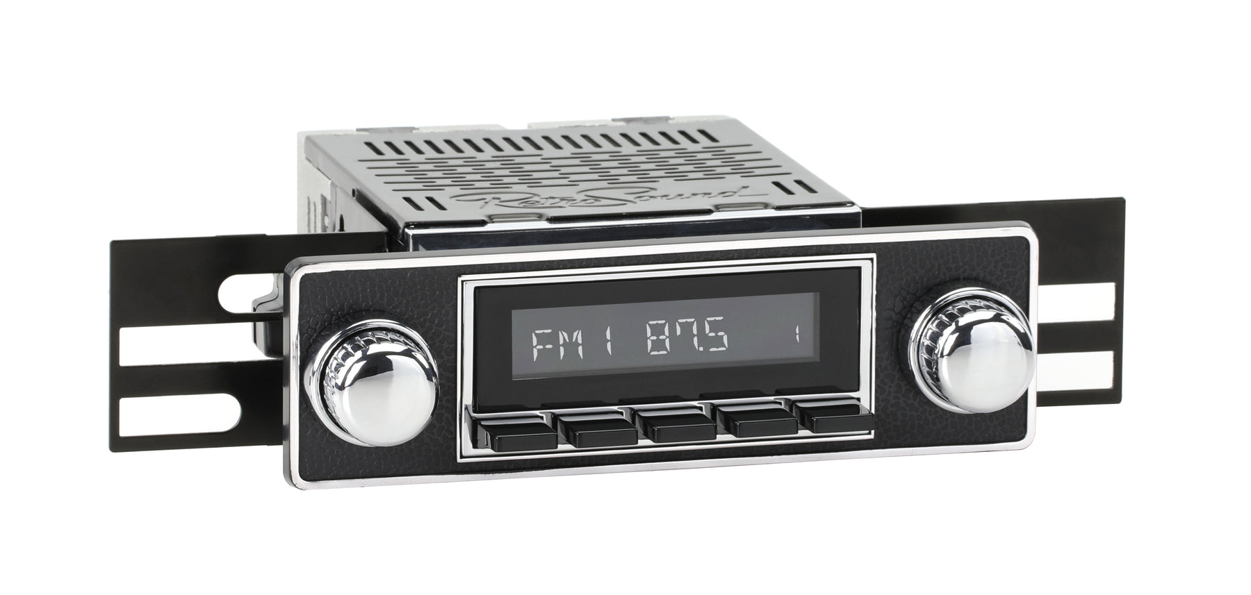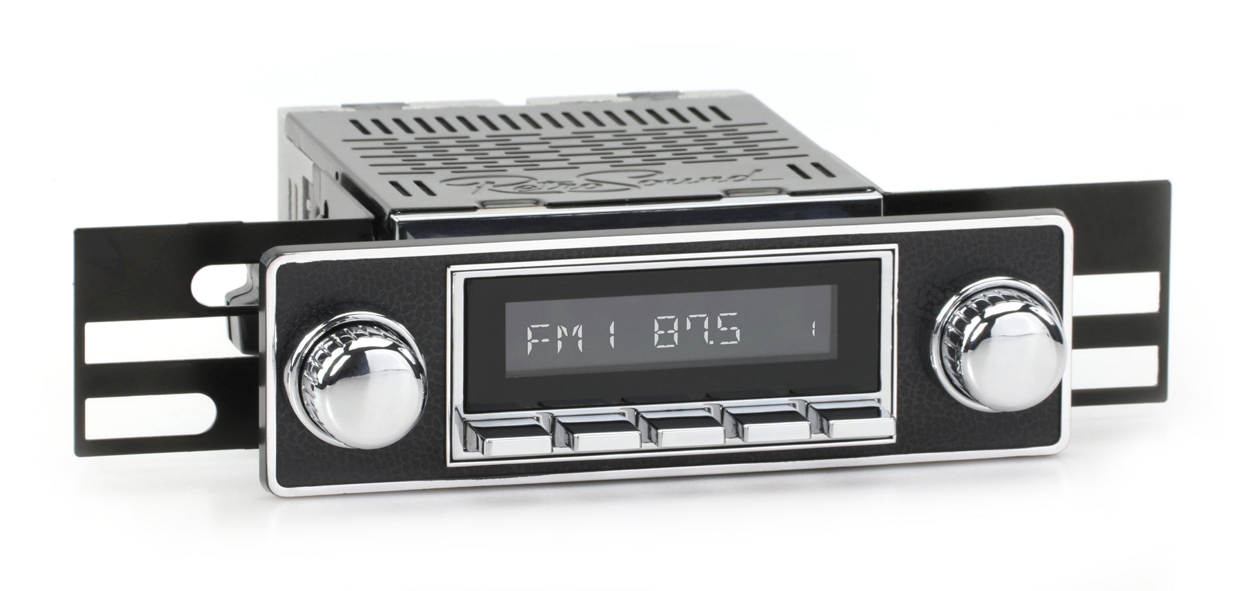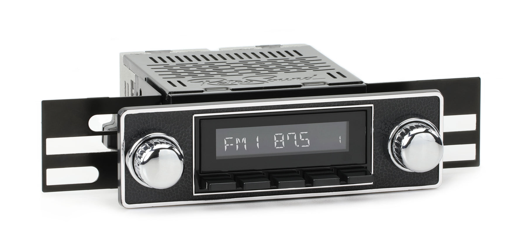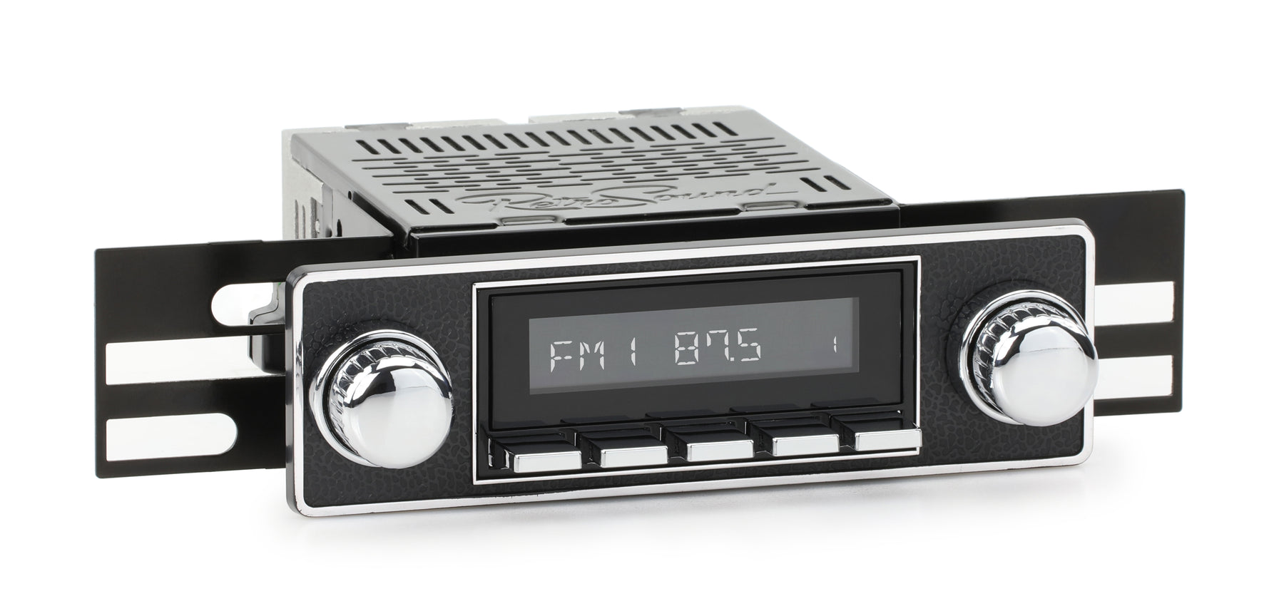 For a factory-like fit, RetroRadio includes RetroSound’s patented InfiniMount™ Brackets that can be adjusted during installation to achieve the proper width and depth of control shafts and a flush fitment of the Radio Face.