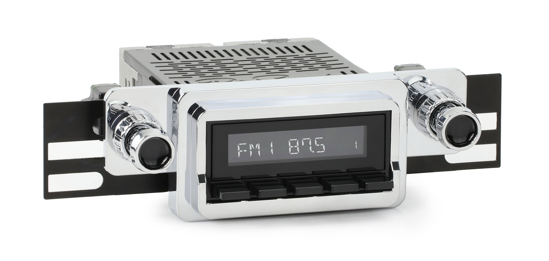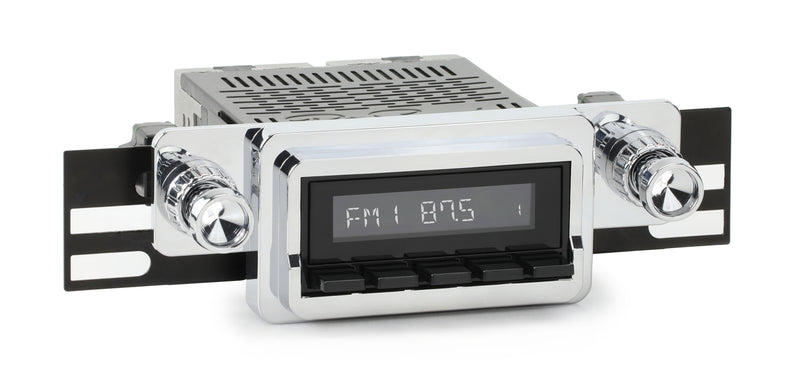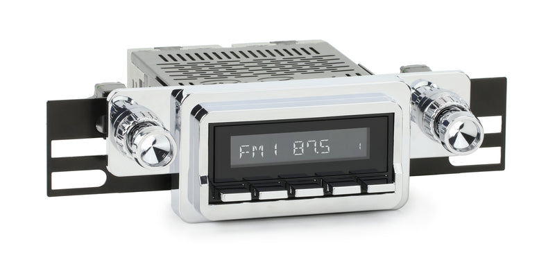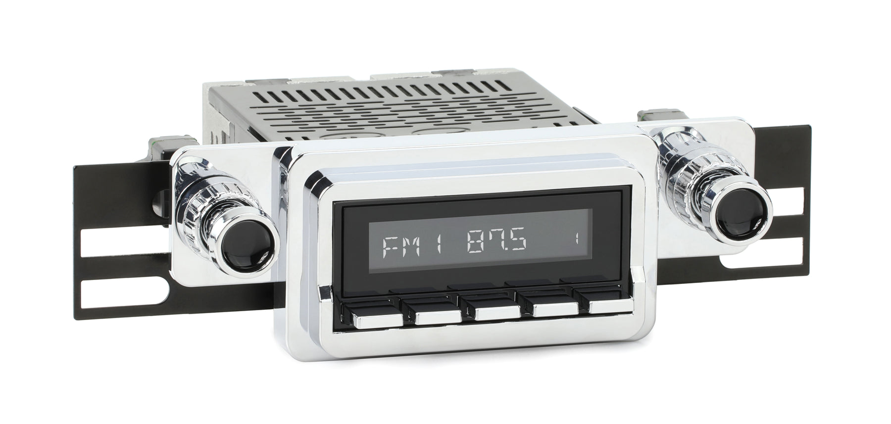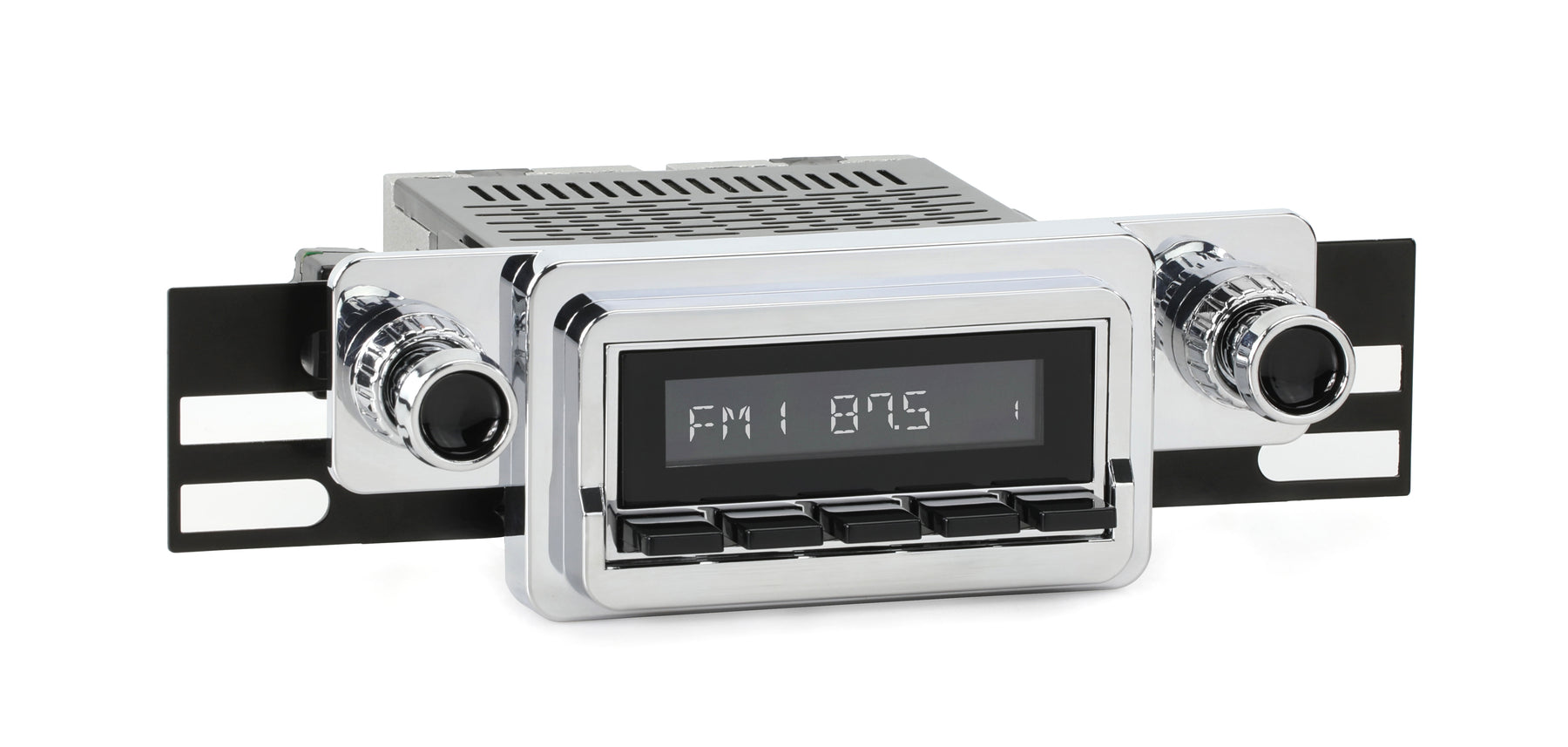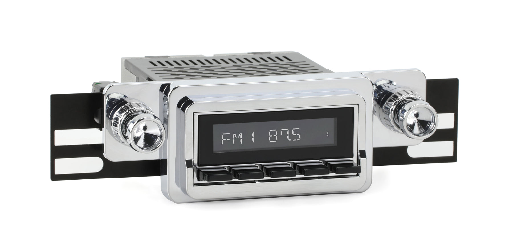 For a factory-like fit, RetroRadio includes RetroSound’s patented InfiniMount™ Brackets that can be adjusted during installation to achieve the proper width and depth of control shafts and a flush fitment of the Radio Face.