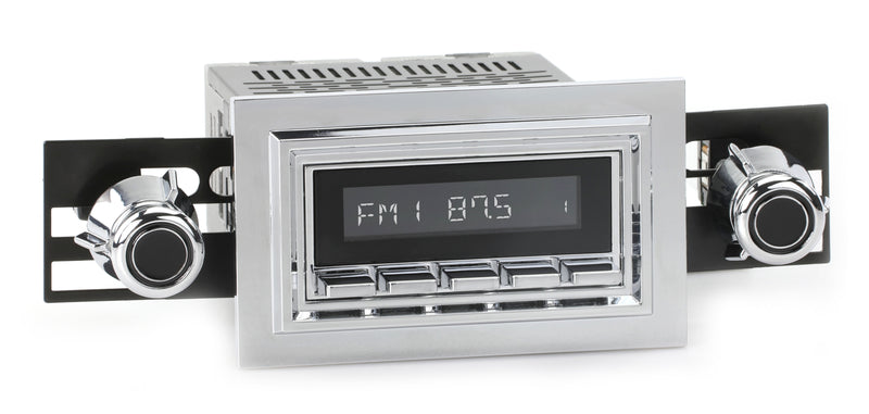 For a factory-like fit, RetroRadio includes RetroSound’s patented InfiniMount™ Brackets that can be adjusted during installation to achieve the proper width and depth of control shafts and a flush fitment of the Radio Face.