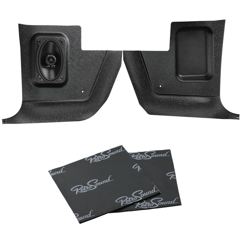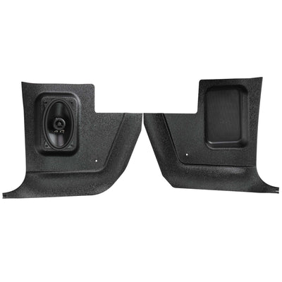 These RetroSound® direct-replacement kick panels mount easily in your classic 1970-76 Plymouth Duster, and will fit most 4x6-inch speakers. The speaker mount is angled to direct sound at the listener. You can use vinyl paint or plastic adhesive paint to match the panels to the color of your vehicle's interior.