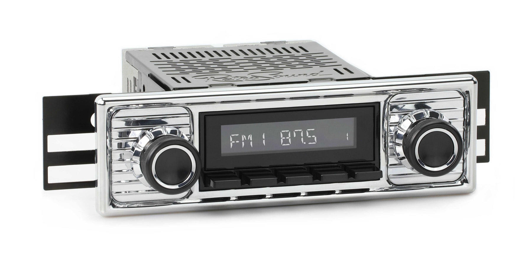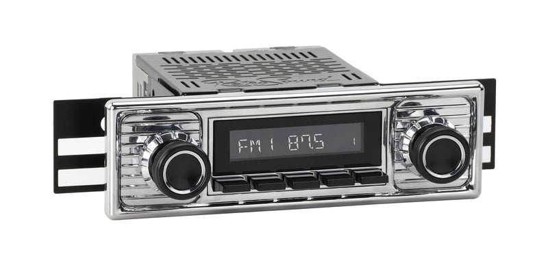 For a factory-like fit, RetroRadio includes RetroSound’s patented InfiniMount™ Brackets that can be adjusted during installation to achieve the proper width and depth of control shafts and a flush fitment of the Radio Face.
