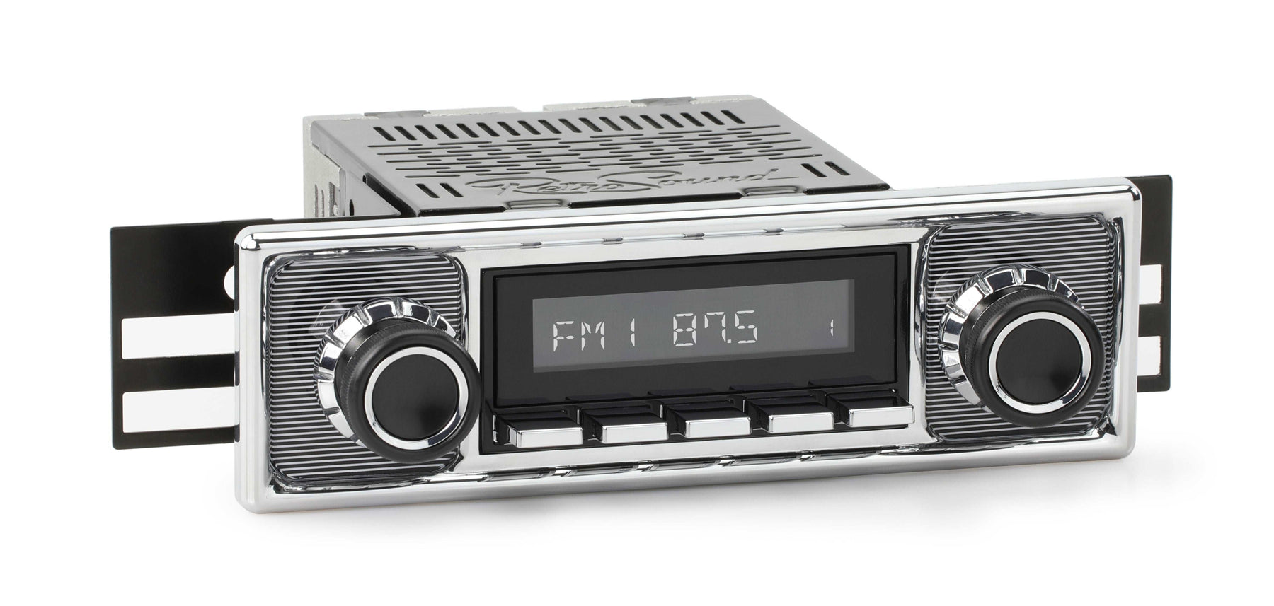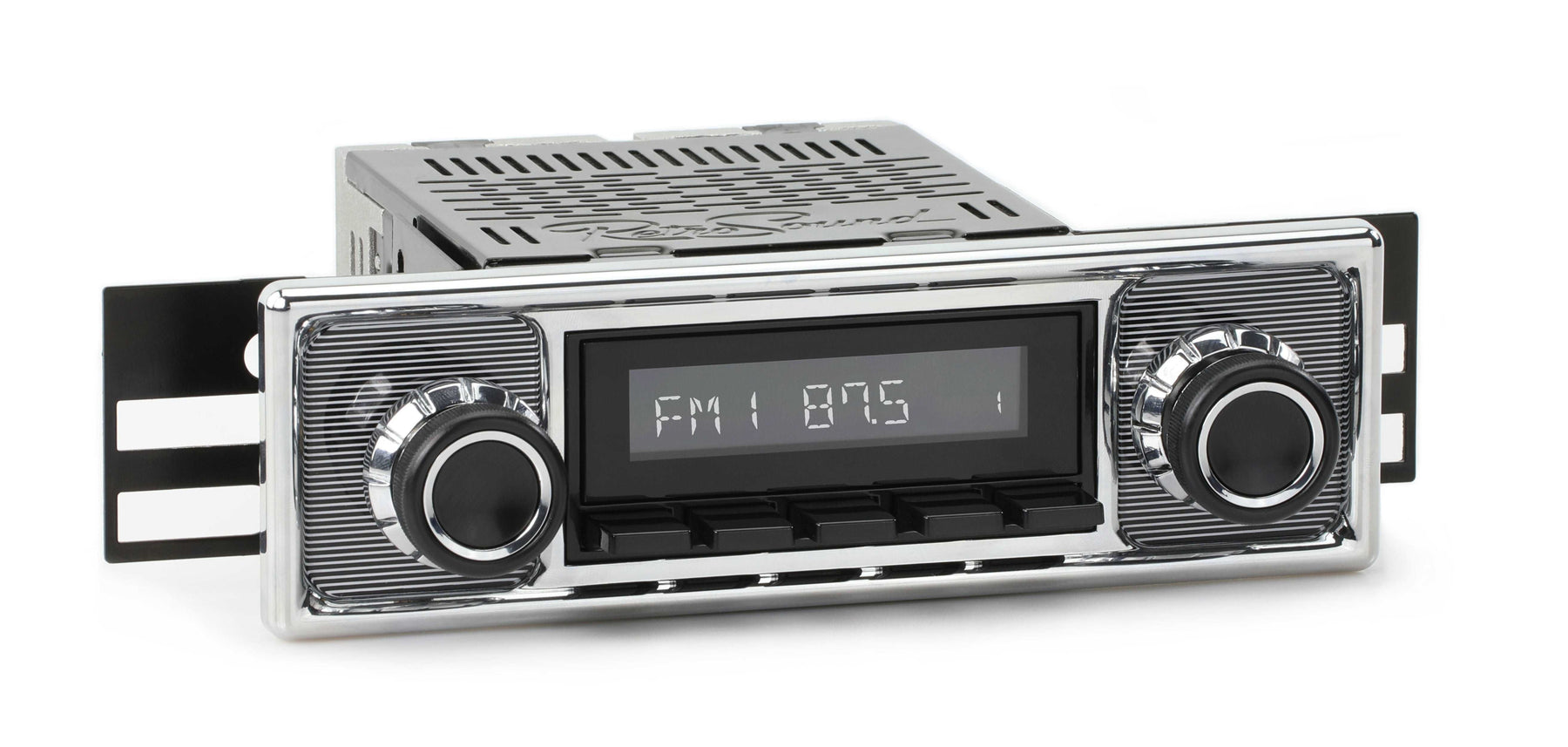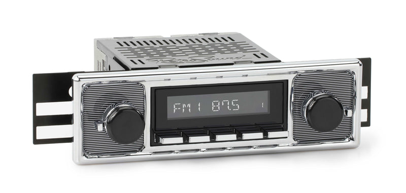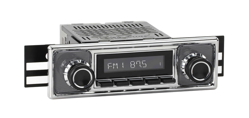For a factory-like fit, RetroRadio includes RetroSound’s patented InfiniMount™ Brackets that can be adjusted during installation to achieve the proper width and depth of control shafts and a flush fitment of the Radio Face.