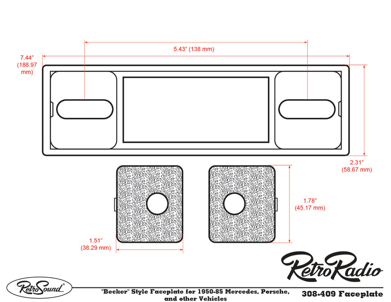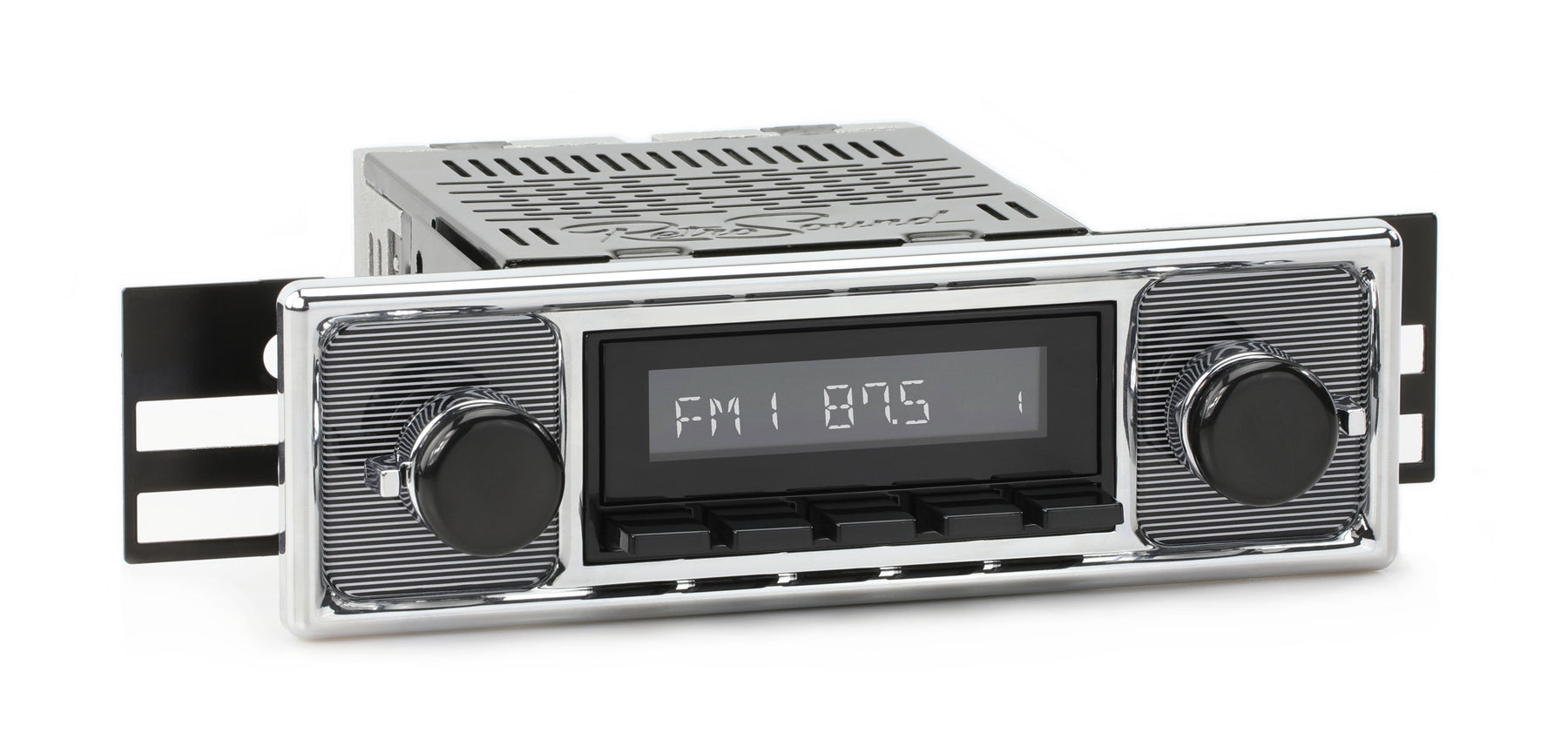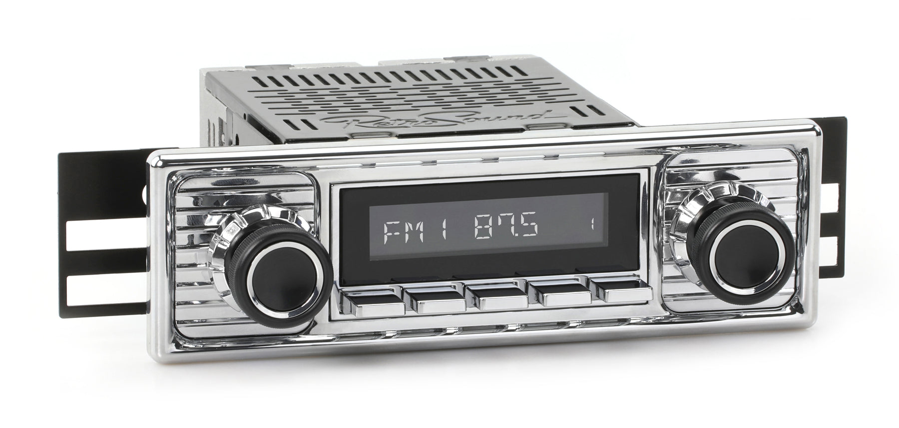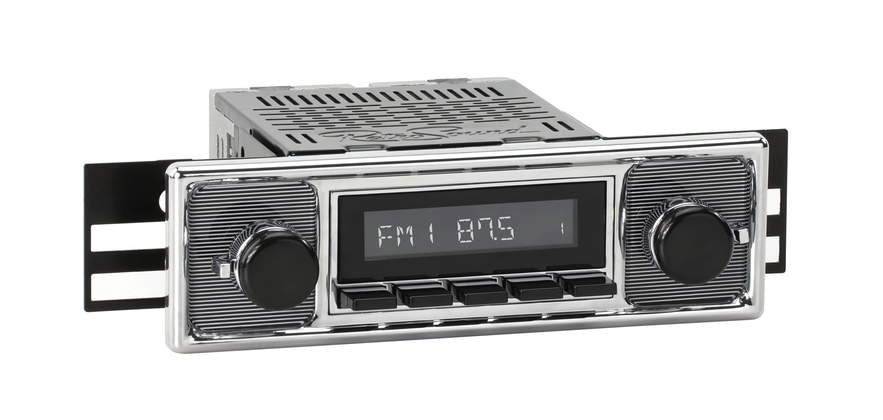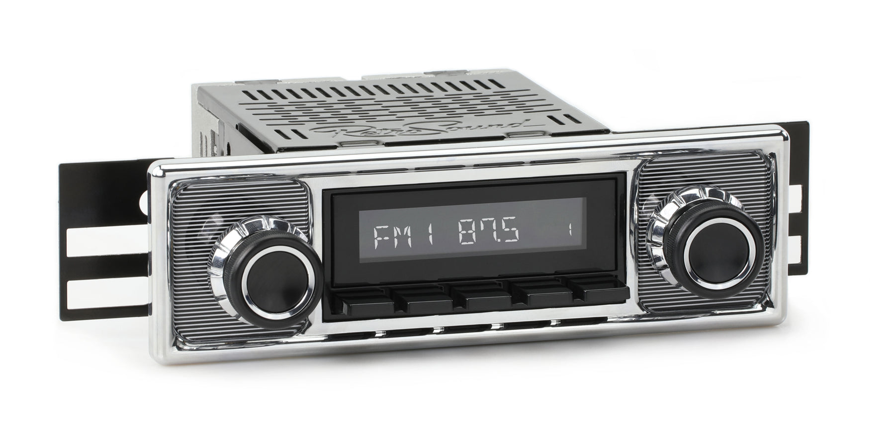 For a factory-like fit, RetroRadio includes RetroSound’s patented InfiniMount™ Brackets that can be adjusted during installation to achieve the proper width and depth of control shafts and a flush fitment of the Radio Face.