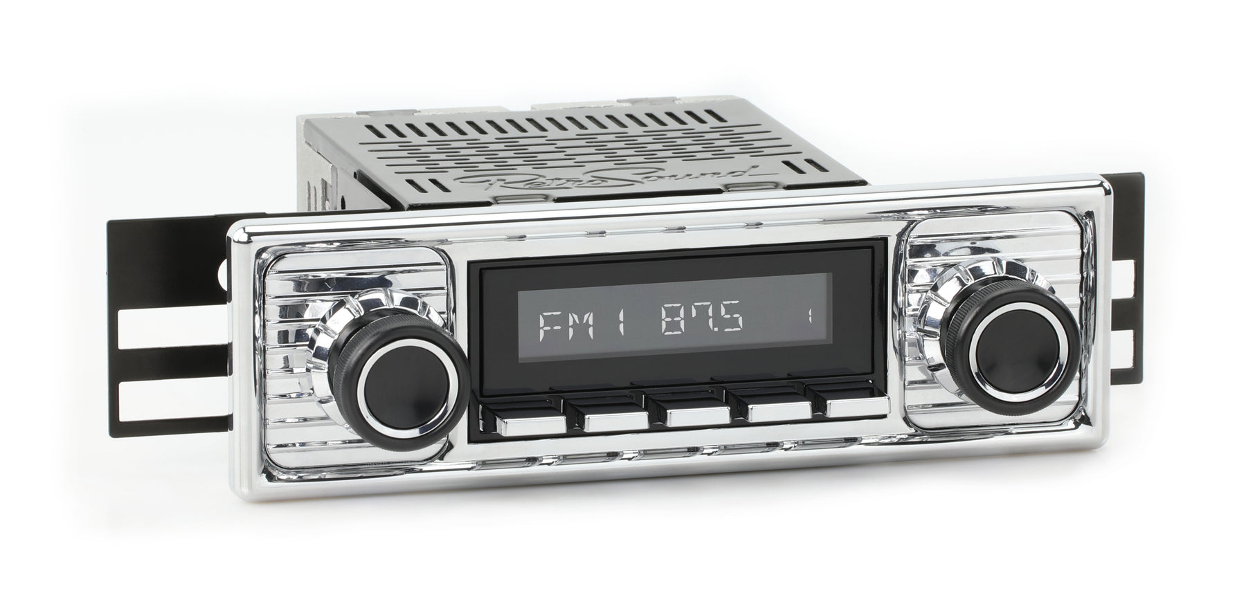 For a factory-like fit, RetroRadio includes RetroSound’s patented InfiniMount™ Brackets that can be adjusted during installation to achieve the proper width and depth of control shafts and a flush fitment of the Radio Face.