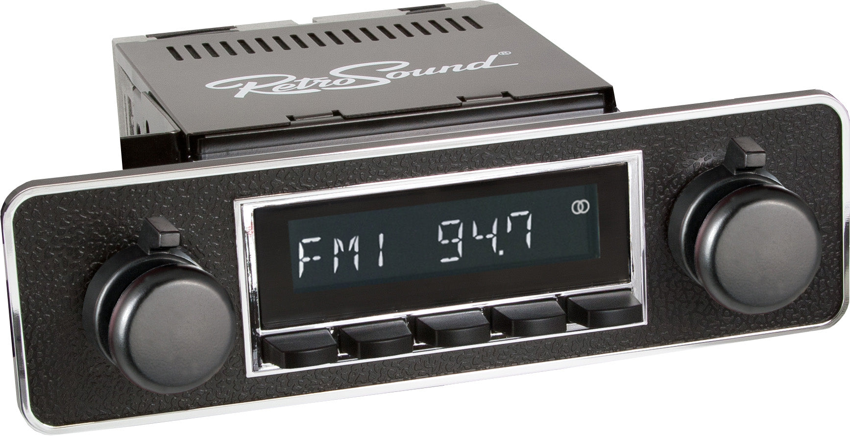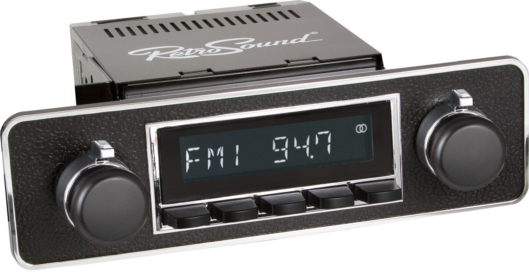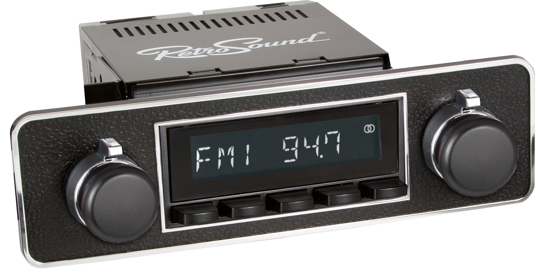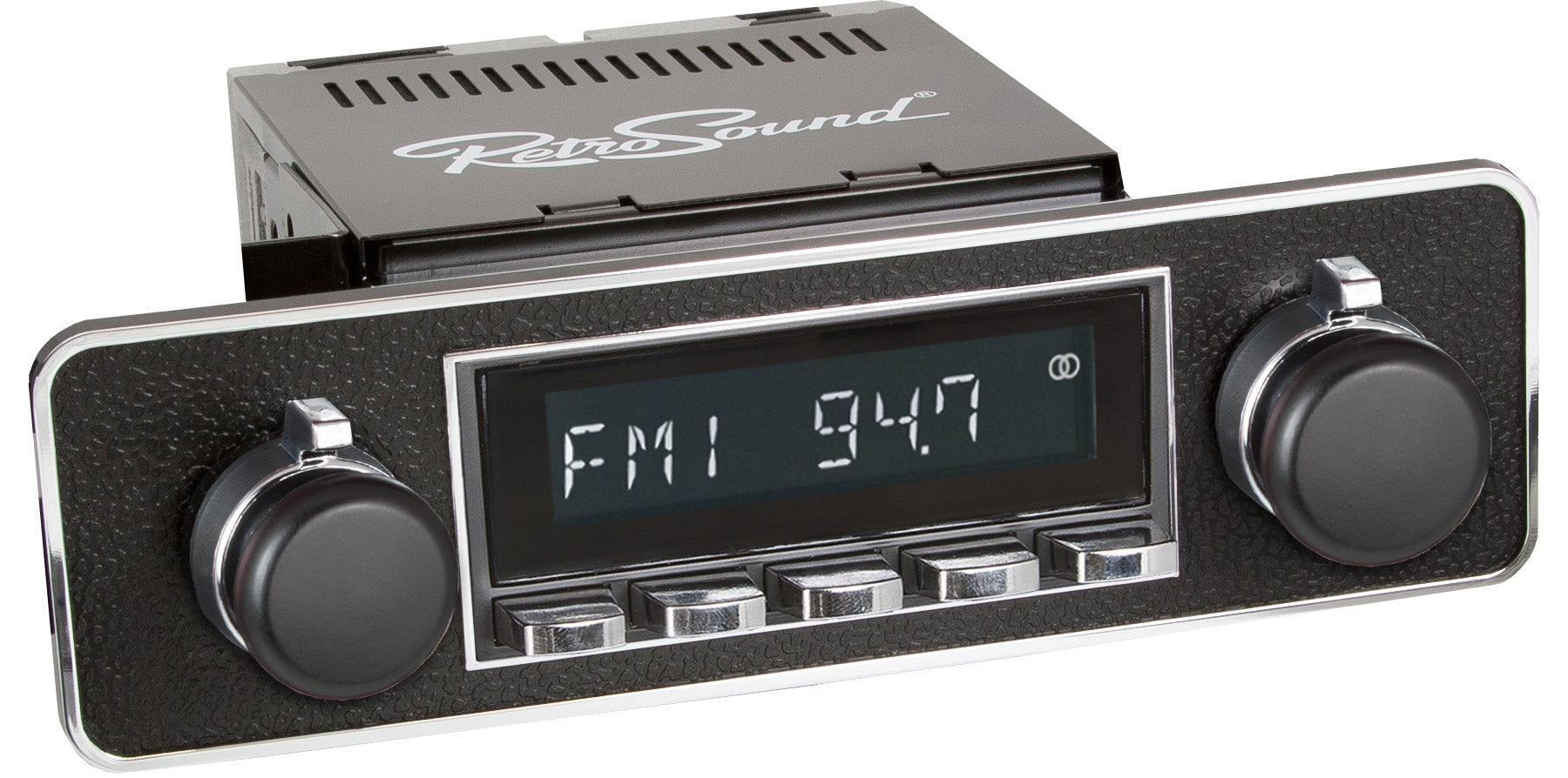 The RetroSound RetroRadio® looks like the original factory radio in your 1965-74 Porsche 911 while discreetly adding all the modern audio features found in your daily driver. Classic push-buttons, replica knobs, and a period-correct bezel or faceplate combine with the radio's display to create a truly authentic look. Listen to your favorite local radio stations, stream your favorite SiriusXM® channel, or play your favorite music over Bluetooth® from your connected device, all with a classic style that blends seamlessly with your interior.
