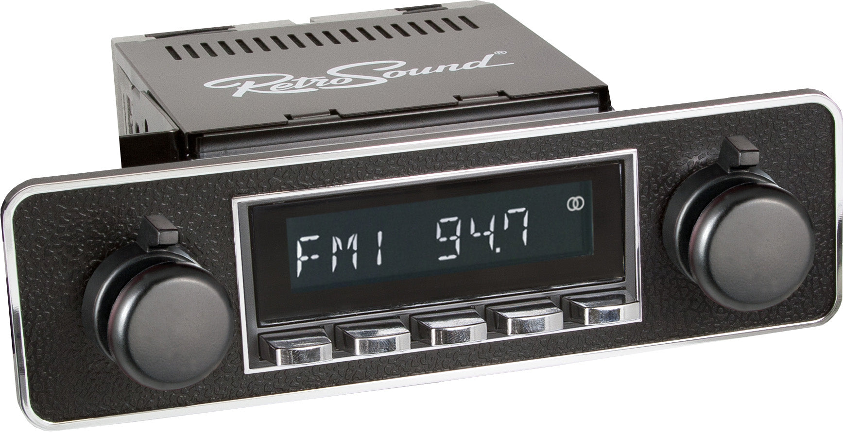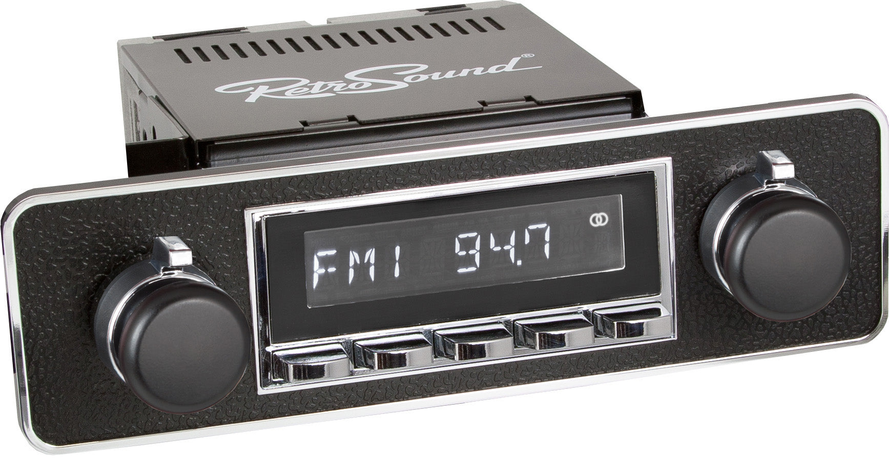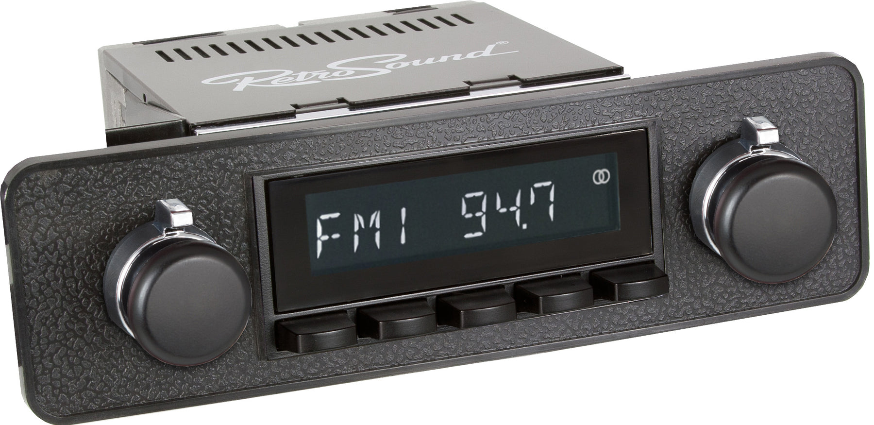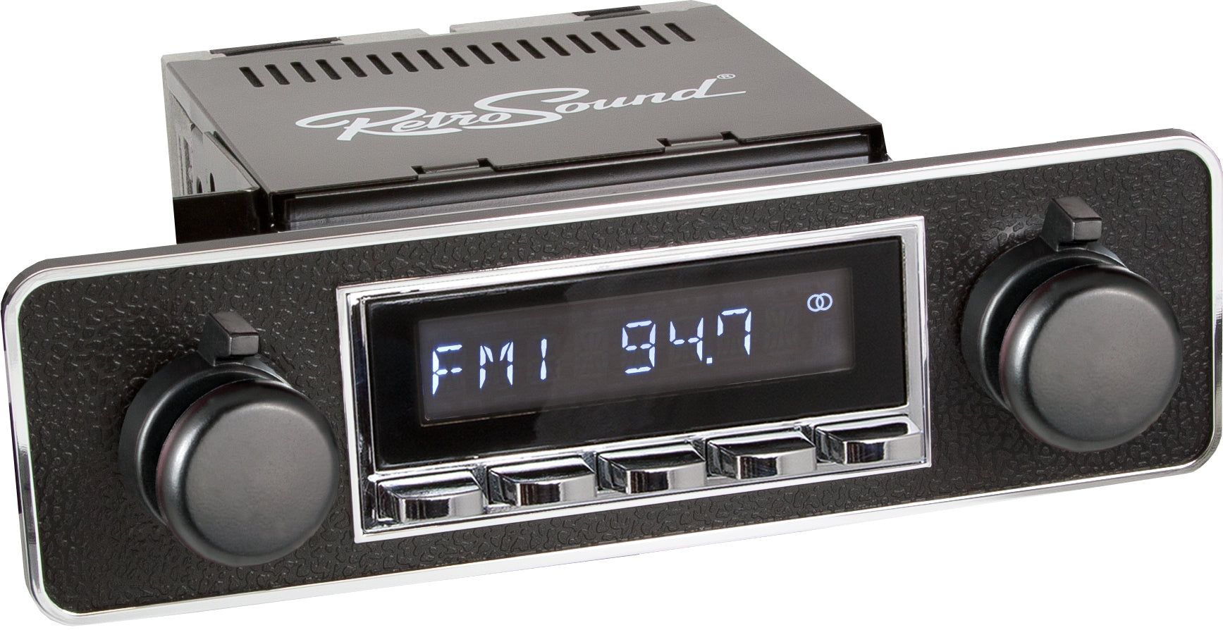 The RetroSound RetroRadio® looks like the original factory radio in your 1965-74 Porsche 911 while discreetly adding all the modern audio features found in your daily driver. Classic push-buttons, replica knobs, and a period-correct bezel or faceplate combine with the radio's display to create a truly authentic look. Listen to your favorite local radio stations, stream your favorite SiriusXM® channel, or play your favorite music over Bluetooth® from your connected device, all with a classic style that blends seamlessly with your interior.