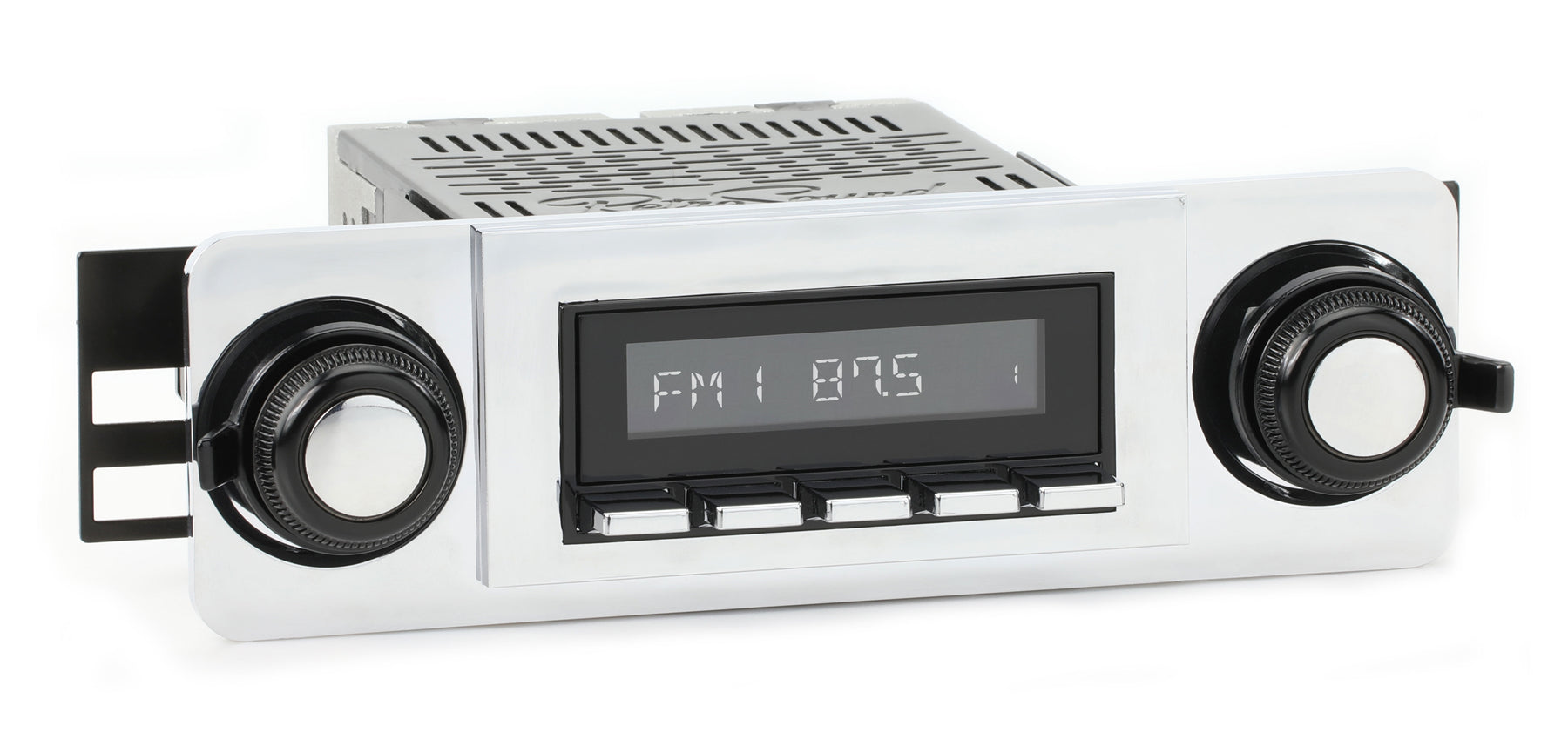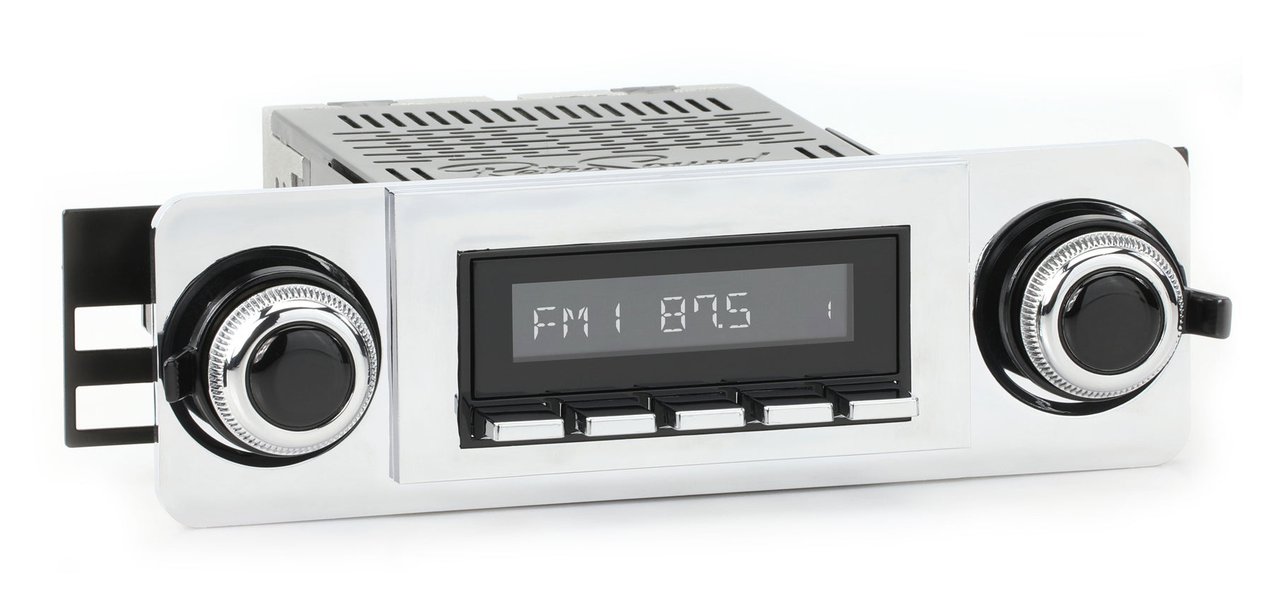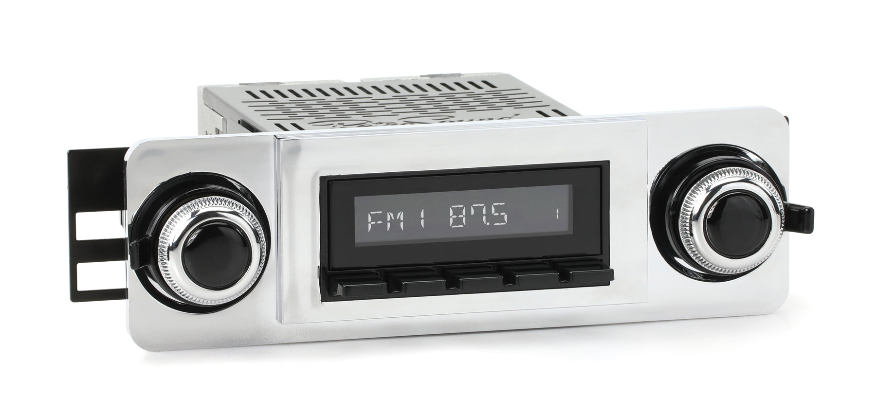 For a factory-like fit, RetroRadio includes RetroSound’s patented InfiniMount™ Brackets that can be adjusted during installation to achieve the proper width and depth of control shafts and a flush fitment of the Radio Face.