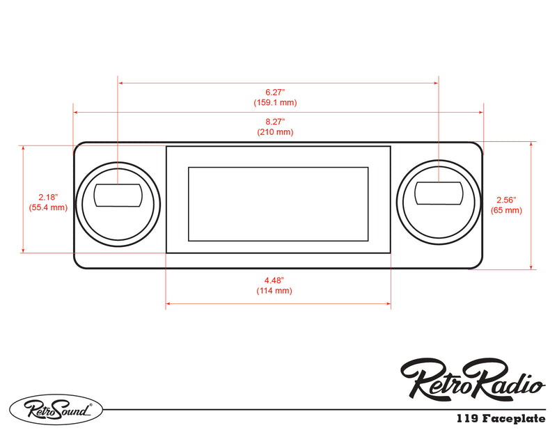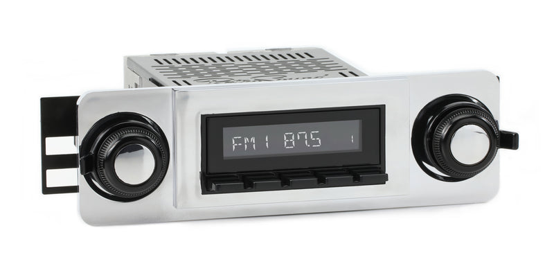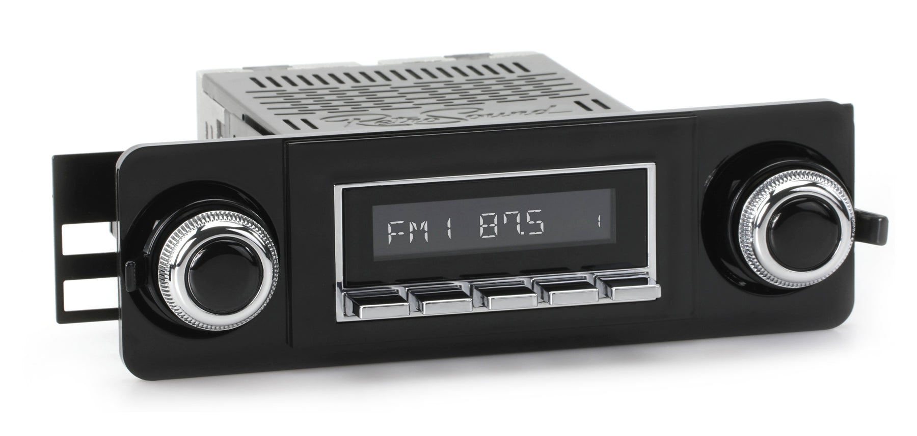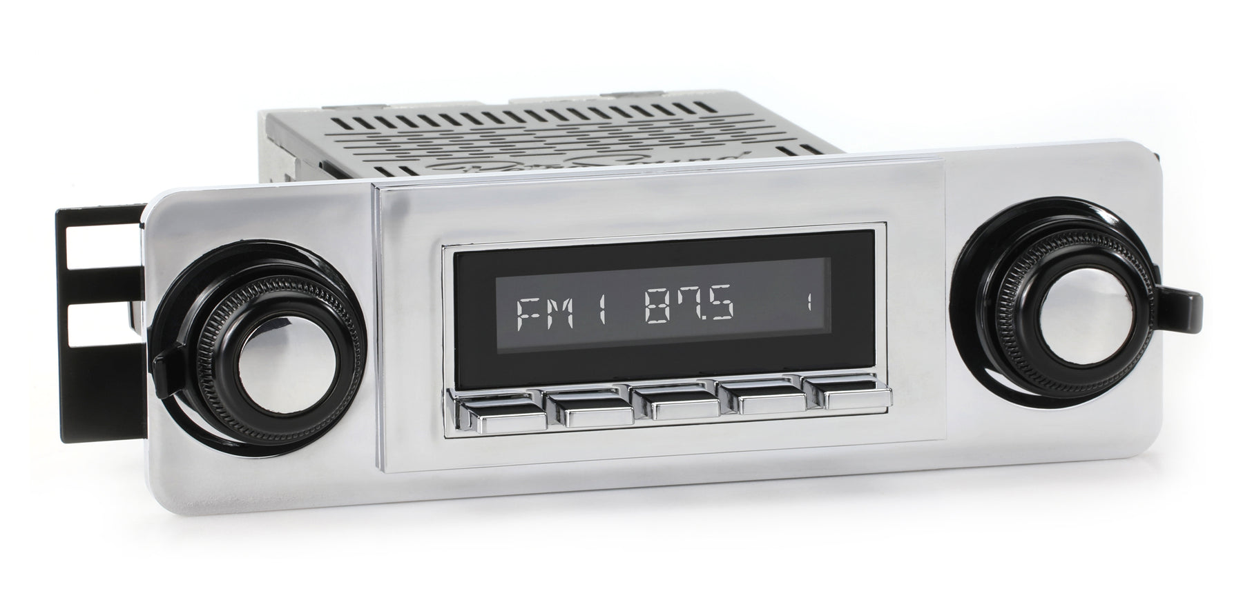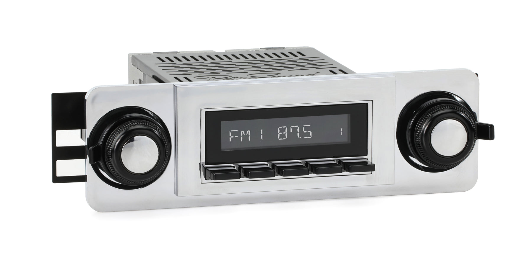 For a factory-like fit, RetroRadio includes RetroSound’s patented InfiniMount™ Brackets that can be adjusted during installation to achieve the proper width and depth of control shafts and a flush fitment of the Radio Face.