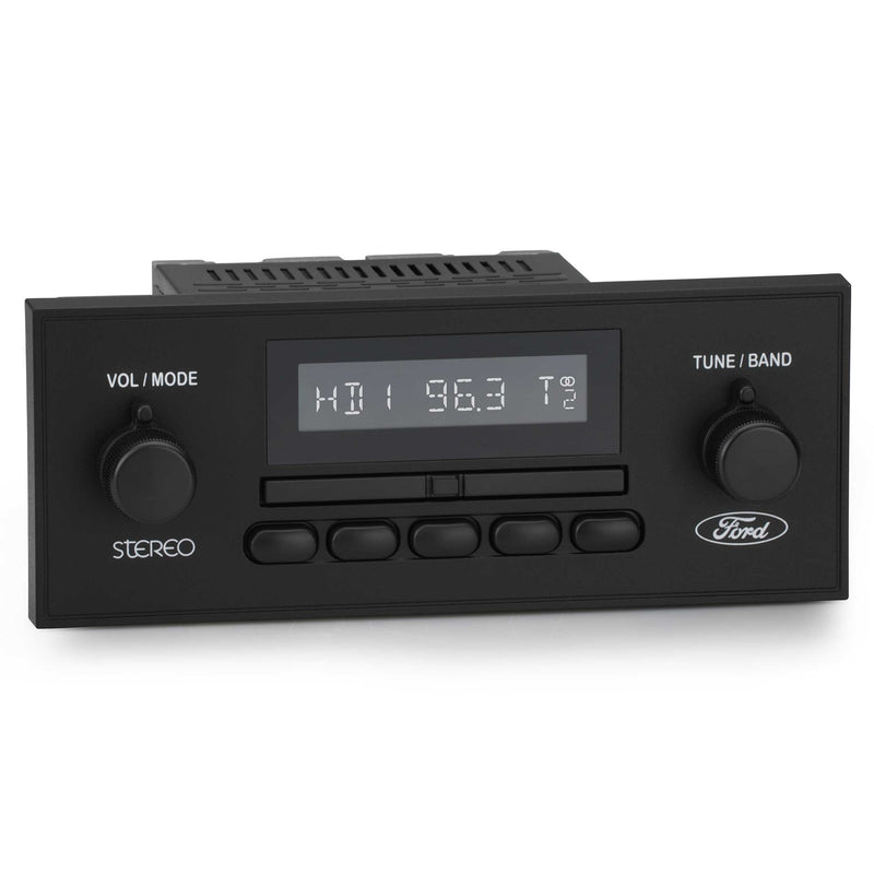 The RetroSound® Dallas Radio is an officially licensed Ford Radio Face designed to replicate the original factory radio in your 1985-86 Ford Bronco. Dallas’s subtle and straightforward design features replica black plastic knobs, rounded push-buttons, and a thin seek bar, finished in matte black with the official Ford logo for added authenticity. The Dallas mounts directly into the factory opening in your 1985-86 Ford Bronco with the included mounting kit and vehicle-specific wiring harness for an easy installation and OEM appearance. The Dallas’s retro appearance looks period-correct in your dash and adds all the modern technology you’d expect in a modern car stereo. The Dallas is available with you choice of 3 different feature sets.