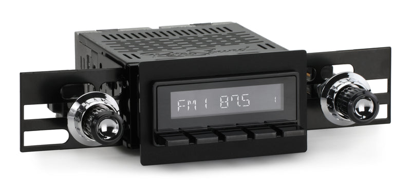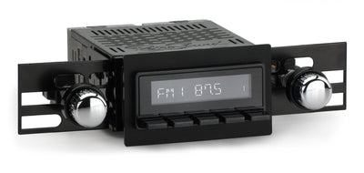 The RetroSound® Denver Radio fits seamlessly into the unique 1.5-inch by 3.5-inch opening in the dash of your 1966-71 International Scout. The nose of the Denver has rounded corners designed to fit flush in your classic vehicle and provide a factory-like fit without the need for a faceplate or bezel. Combined with replica knobs that mimic the look and feel of your original radio, the Denver is the perfect classic car stereo for adding modern stereo features with period-correct styling to your 1966-71 International Scout. The Denver is available with your choice of 3 different feature sets.