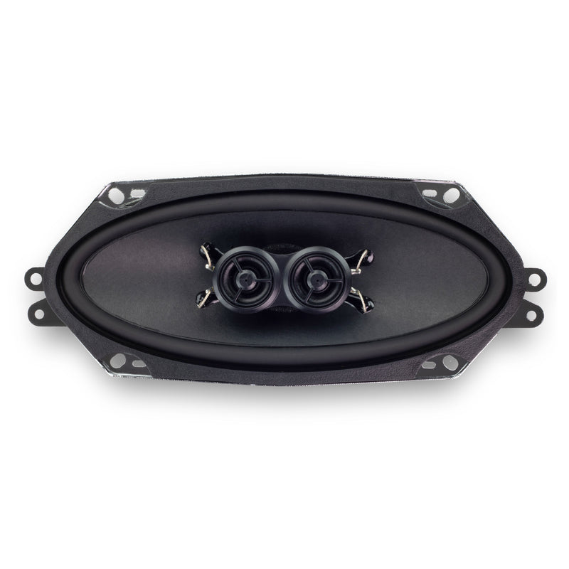 RetroSound® Premium Stereo Dash Speakers offer exceptional audio reproduction for the absolute best audio quality possible from a single speaker location. Designed for optimal performance in any classic vehicle, these dual voice coil speakers produce a stereo mix from a single speaker location. For a super slim mounting depth, a Neodymium magnet structure is used with a dip-cut design to prevent distortion. The Santoprene® surrounds provide the most accurate audio reproduction possible, and the silk tweeters produce smooth and more natural-sounding highs.