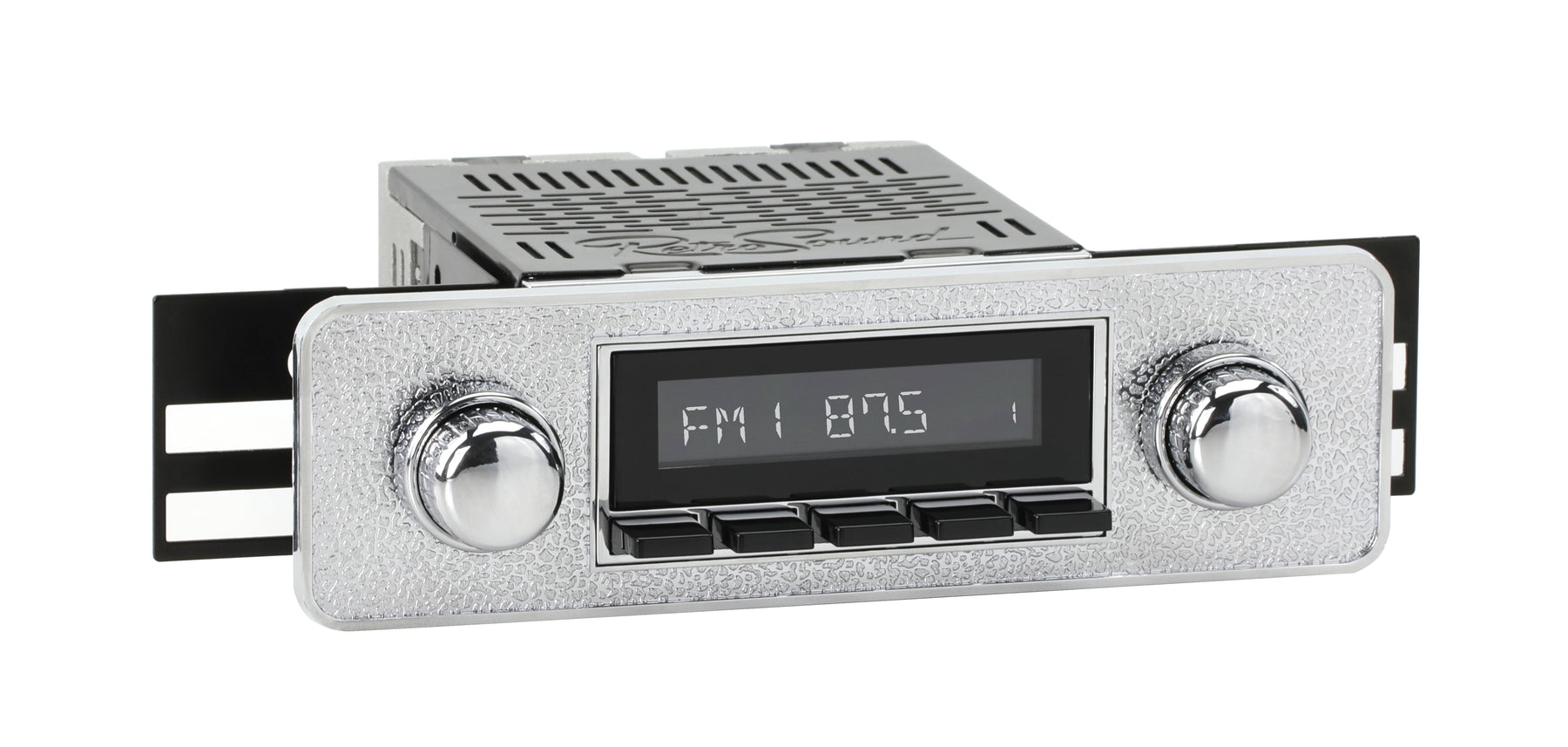 For a factory-like fit, RetroRadio includes RetroSound’s patented InfiniMount™ Brackets that can be adjusted during installation to achieve the proper width and depth of control shafts and a flush fitment of the Radio Face.