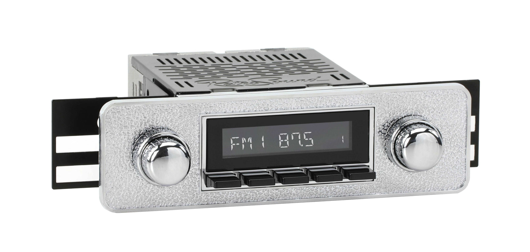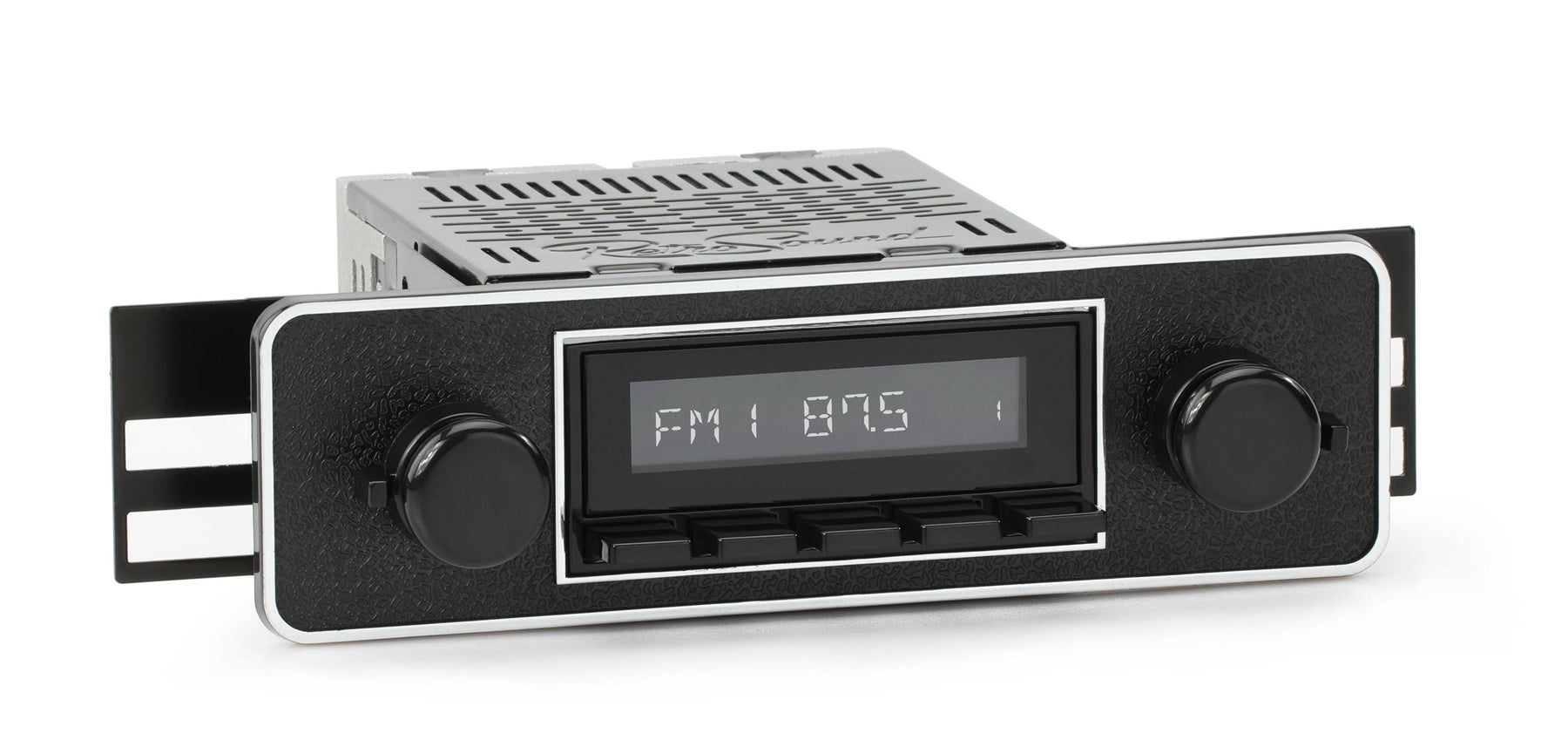The RetroSound RetroRadio® looks like the original factory radio in your 1959-66 Volvo PV444 while discreetly adding all the modern audio features found in your daily driver. Classic push-buttons, replica knobs, and a period-correct bezel or faceplate combine with the radio's display to create a truly authentic look. Listen to your favorite local radio stations, stream your favorite SiriusXM® channel, or play your favorite music over Bluetooth® from your connected device, all with a classic style that blends seamlessly with your interior.