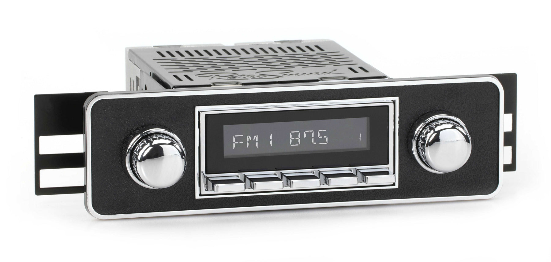 For a factory-like fit, RetroRadio includes RetroSound’s patented InfiniMount™ Brackets that can be adjusted during installation to achieve the proper width and depth of control shafts and a flush fitment of the Radio Face.