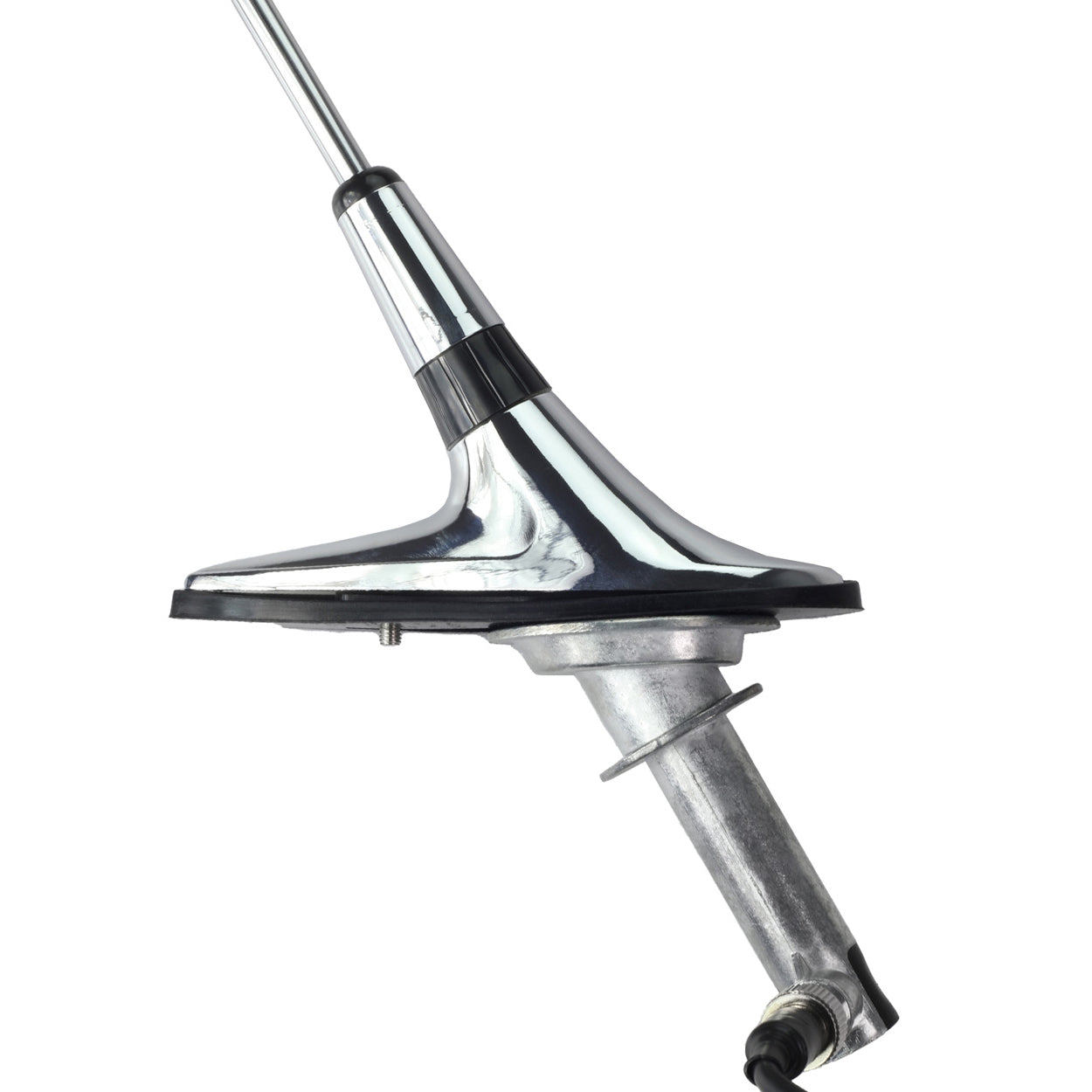 These OE-quality replacement antennas feature a chrome plated brass mast that is almost impervious to the elements and provides an improved ground plane for enhanced AM/FM reception. All metal mounting parts are used. Available with either a Semi-Collapsible Mast or a fixed mast. Antenna cable is included.