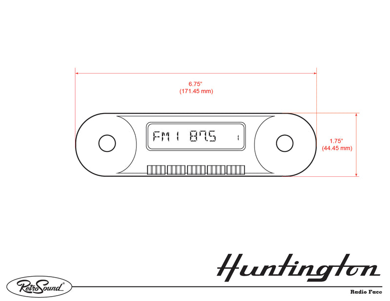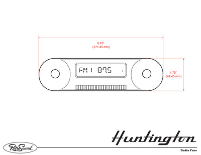 The RetroSound® Huntington is a direct-fit replacement radio for your classic 1966-77 Ford Bronco or 1961-66 Ford Truck. Huntington looks and fits like the original Ford factory radio, but boasts the most modern technological features. Bluetooth® connectivity is built in, for hands-free phone calls and wireless audio streaming. Huntington features a 32,000 color display to match the interior and dash lighting of your Ford F-Series Pickup. The Huntington includes a rear-mounted USB port for flash drives plus two standard auxiliary inputs. The Huntington has a built-in 25 watts x 4 channel power amplifier as well as front and rear RCA pre-outs, that allow the ability to add external amplifiers.
