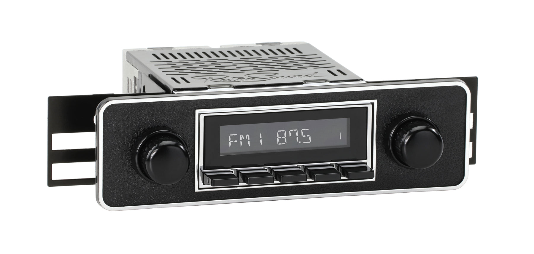 For a factory-like fit, RetroRadio includes RetroSound’s patented InfiniMount™ Brackets that can be adjusted during installation to achieve the proper width and depth of control shafts and a flush fitment of the Radio Face.