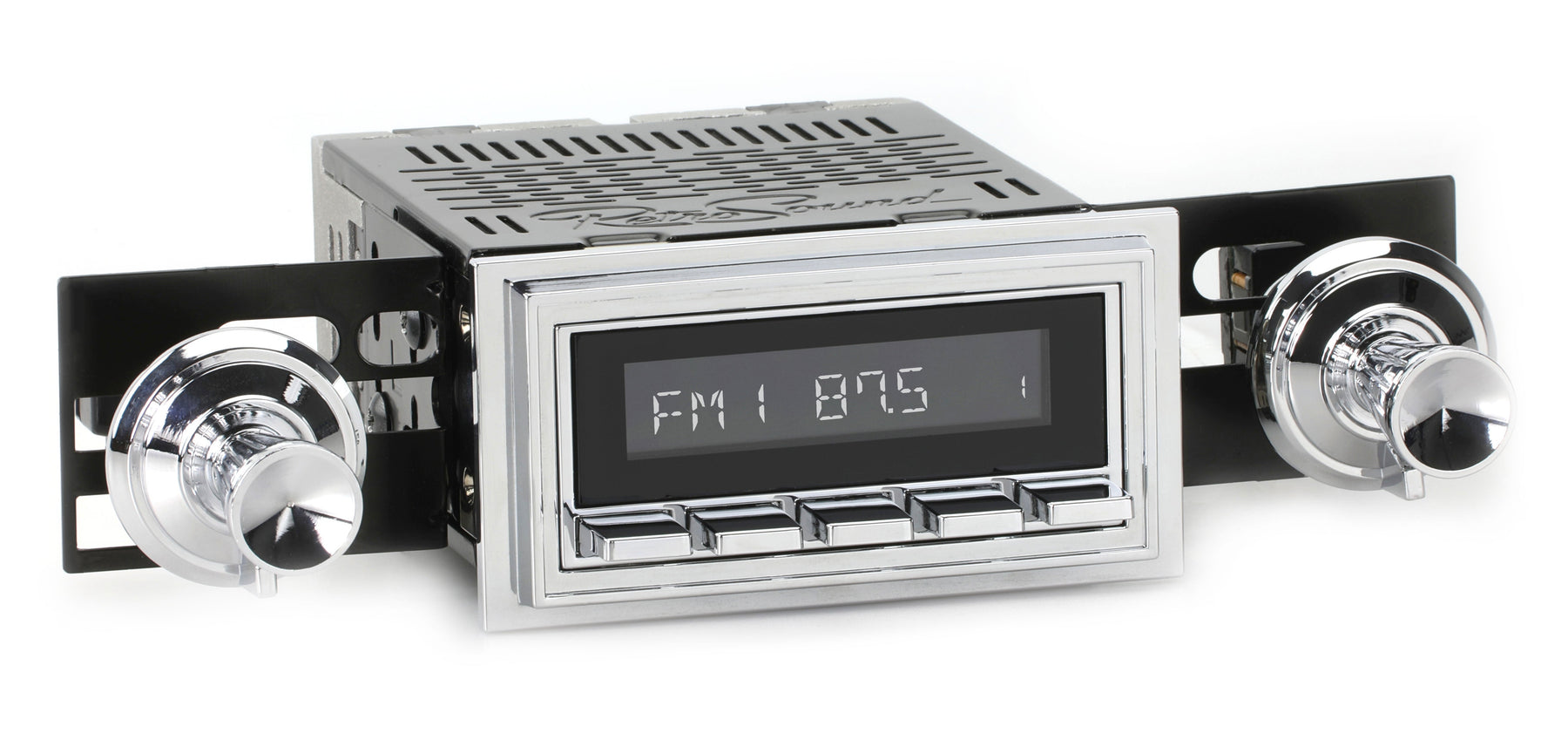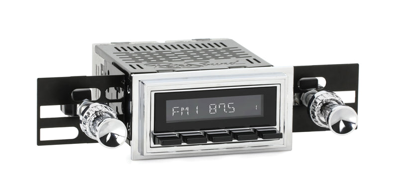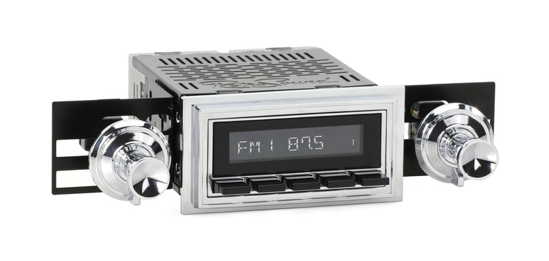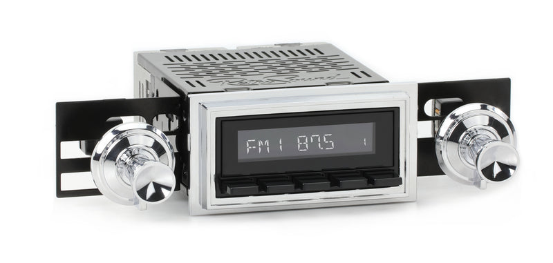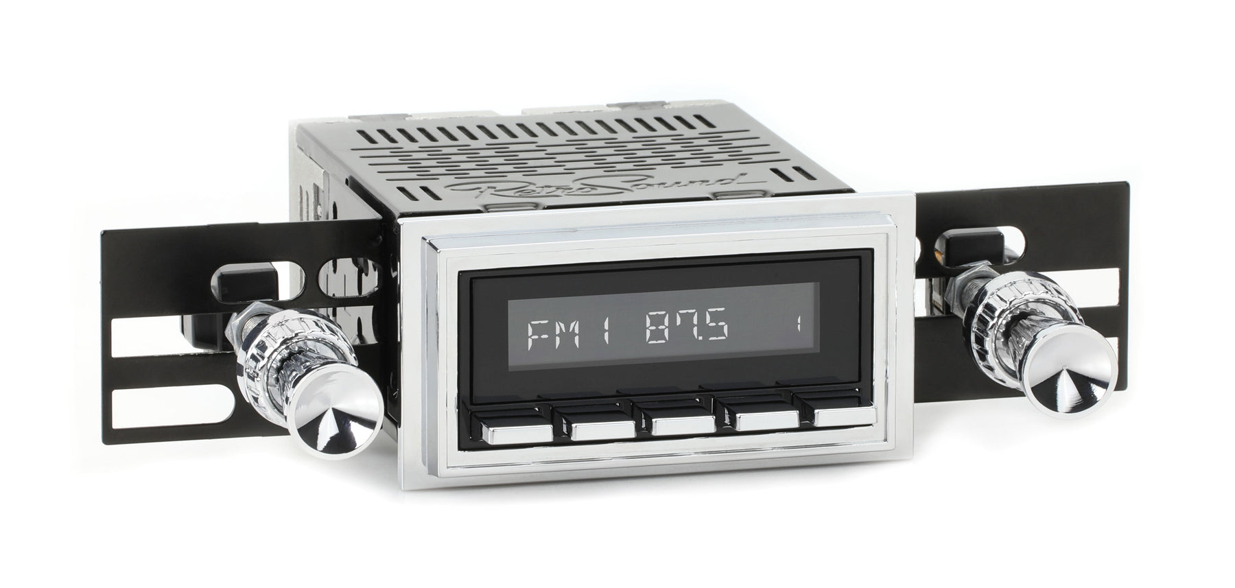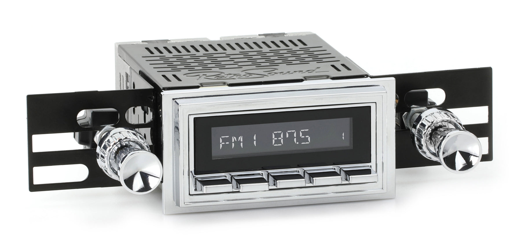 For a factory-like fit, RetroRadio includes RetroSound’s patented InfiniMount™ Brackets that can be adjusted during installation to achieve the proper width and depth of control shafts and a flush fitment of the Radio Face.