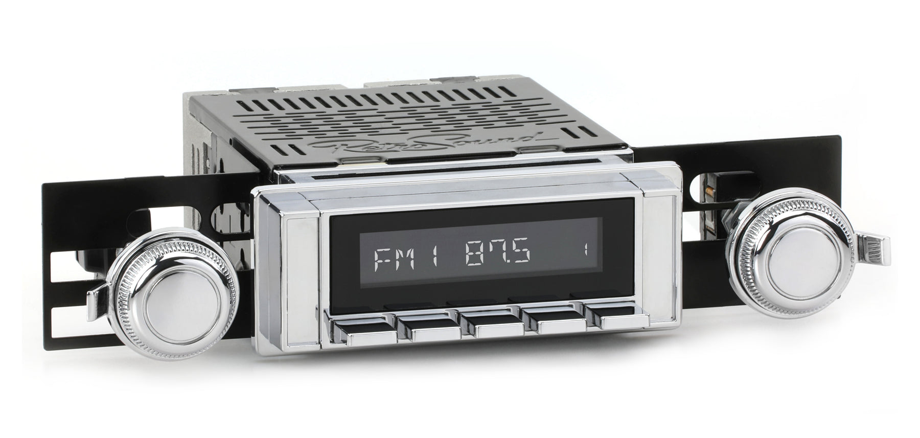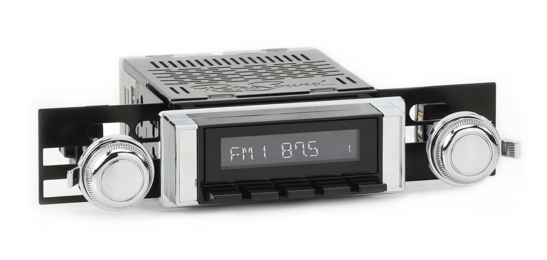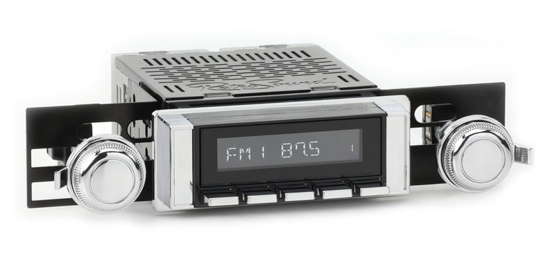 For a factory-like fit, RetroRadio includes RetroSound’s patented InfiniMount™ Brackets that can be adjusted during installation to achieve the proper width and depth of control shafts and a flush fitment of the Radio Face.