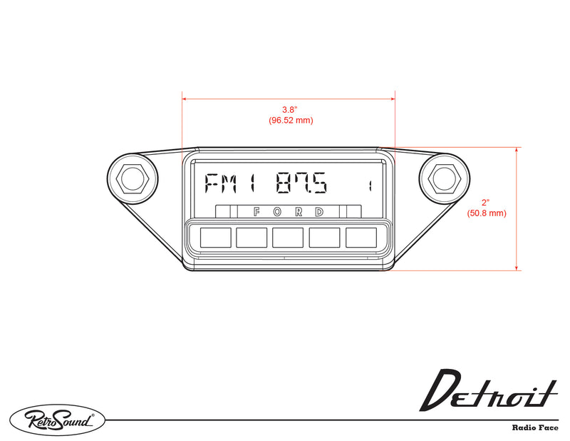 RetroSound®'s Detroit is the most technologically-advanced radio ever made for your classic 1964-66 Ford Ranchero. The compact size installs easily and discreetly behind the dash for a fully integrated look. It mounts seamlessly into your dash, with no additional faceplates or bezels needed. The radio body can be remote-mounted almost anywhere, using our nine-foot radio extension cable.