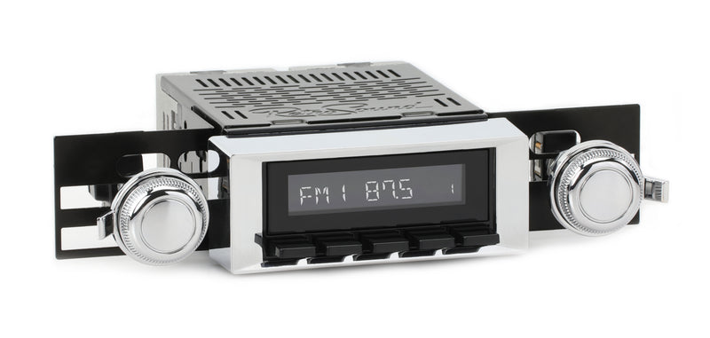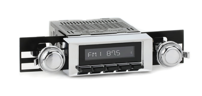 For a factory-like fit, RetroRadio includes RetroSound’s patented InfiniMount™ Brackets that can be adjusted during installation to achieve the proper width and depth of control shafts and a flush fitment of the Radio Face.