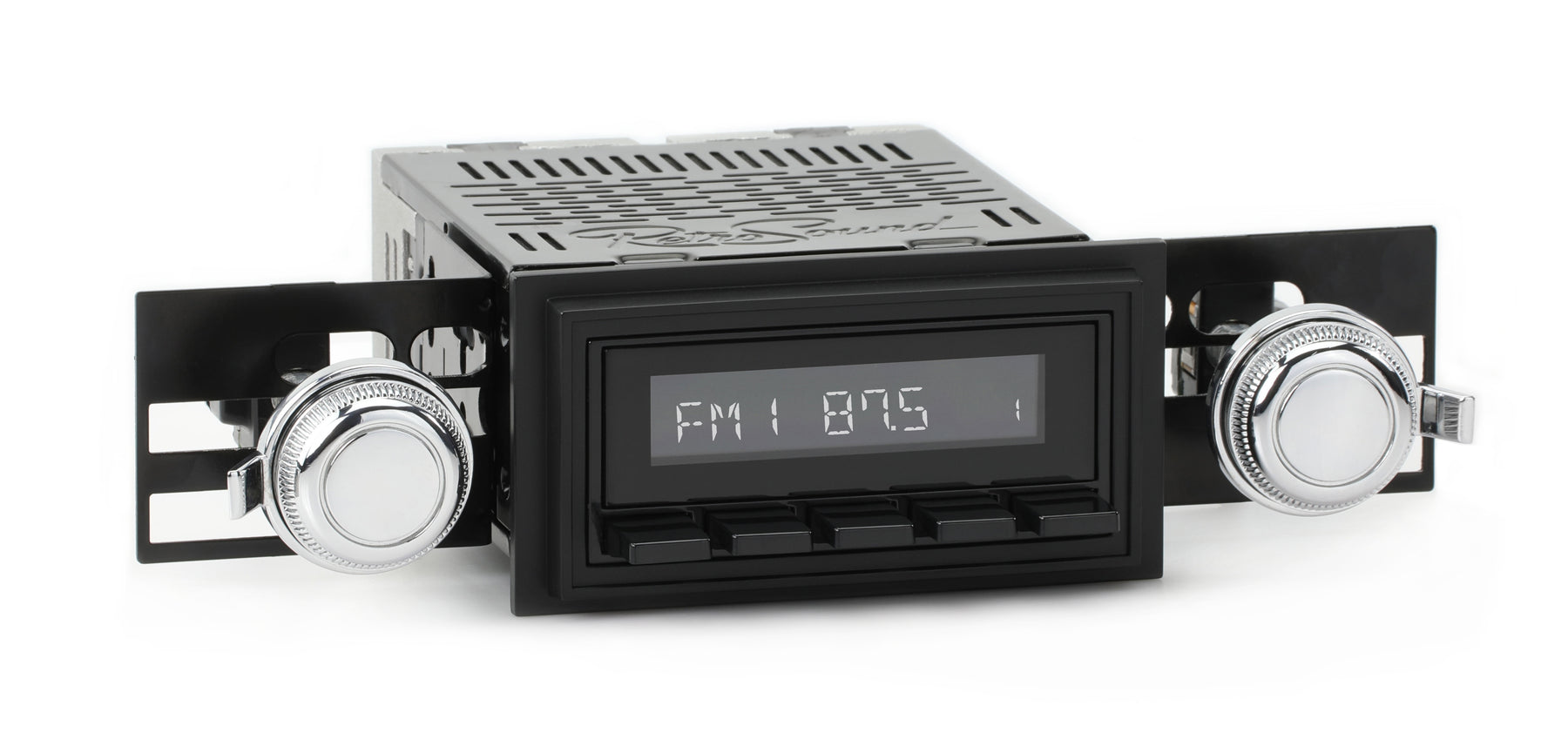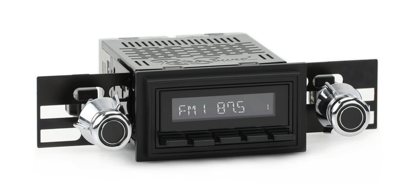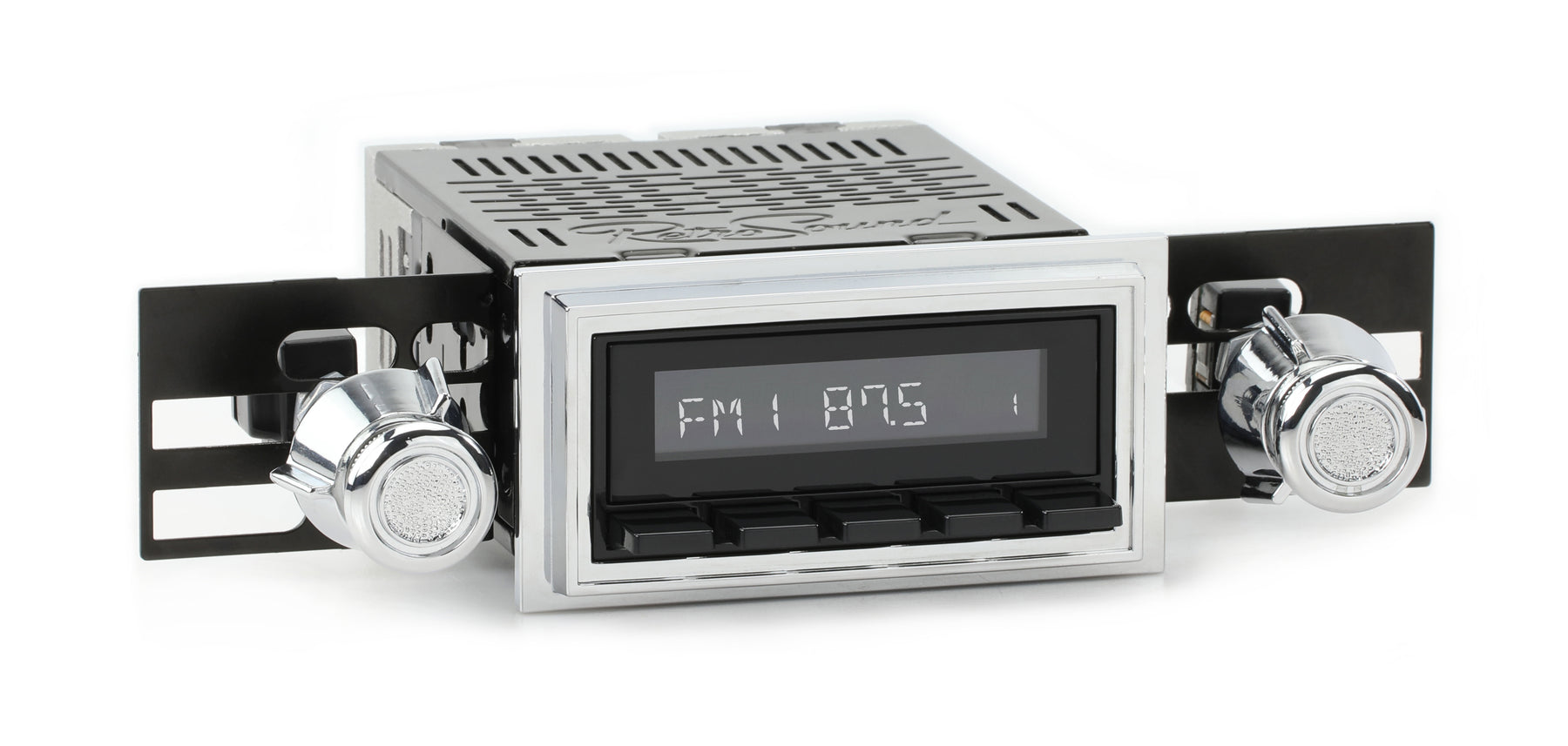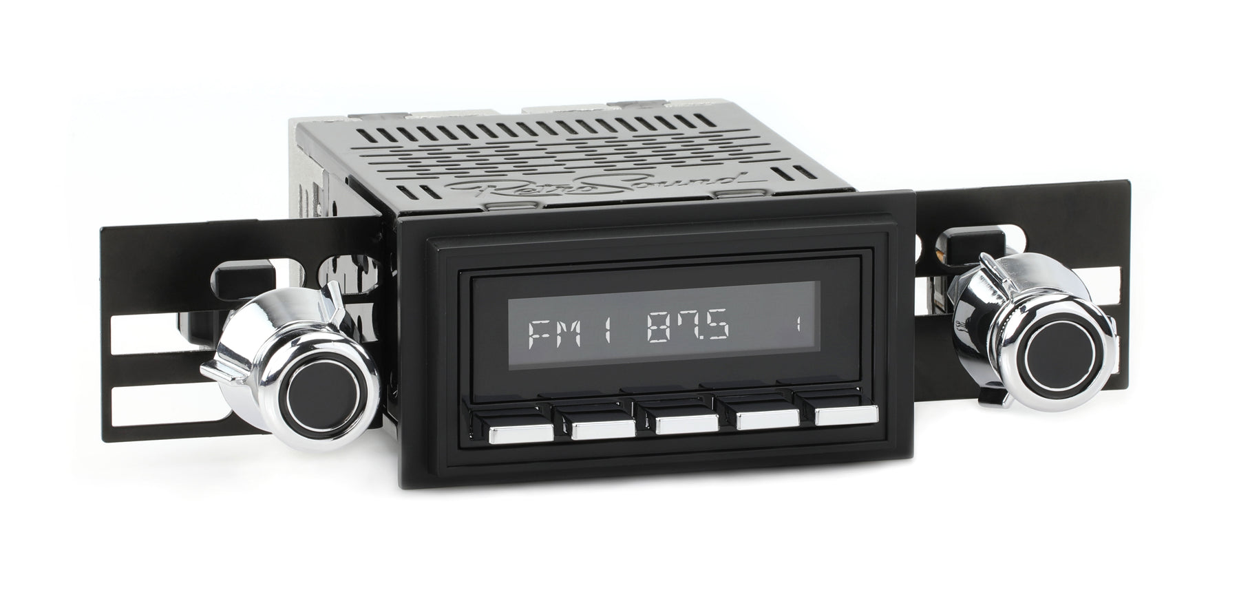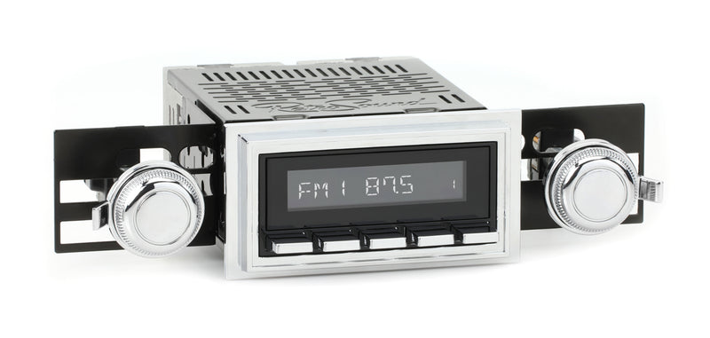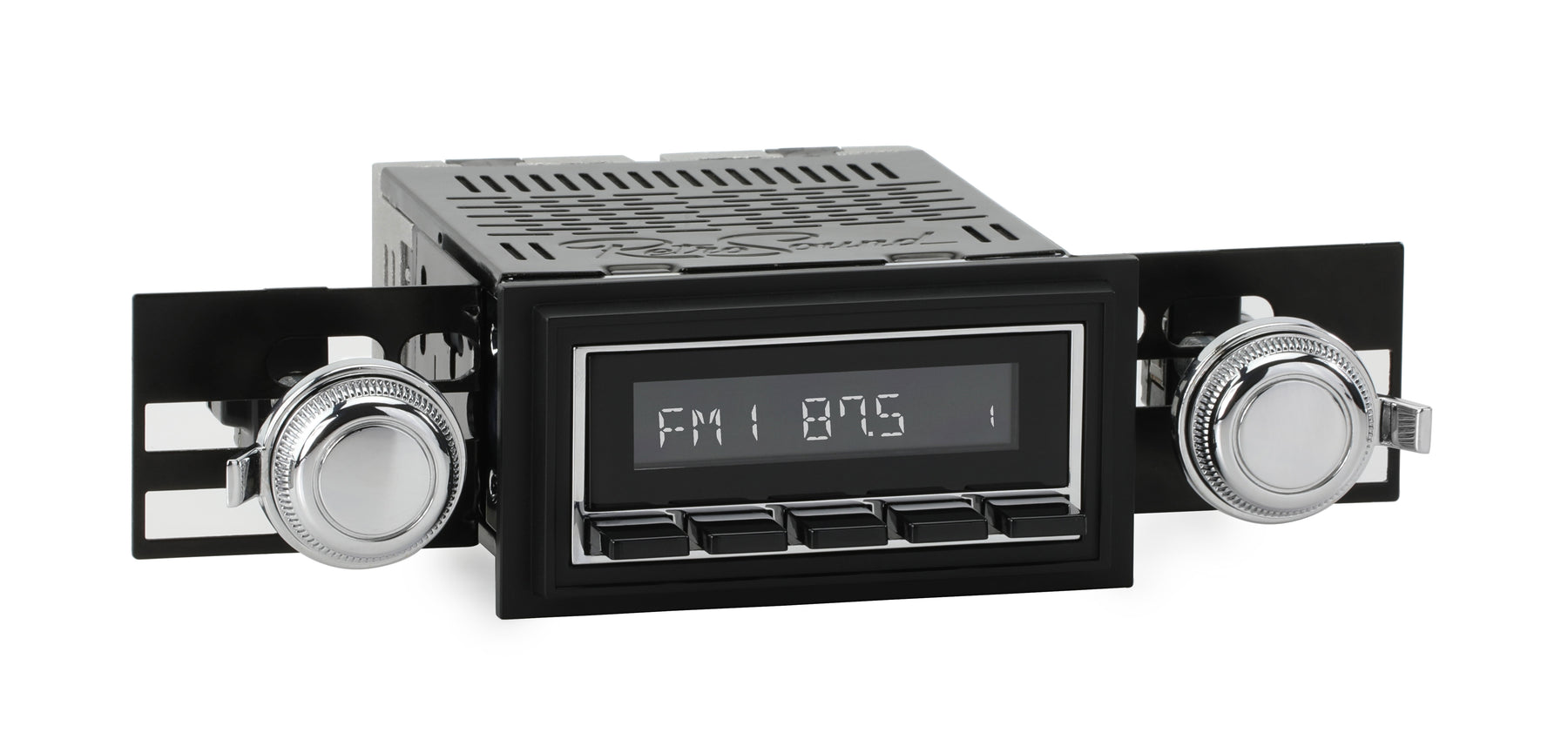 For a factory-like fit, RetroRadio includes RetroSound’s patented InfiniMount™ Brackets that can be adjusted during installation to achieve the proper width and depth of control shafts and a flush fitment of the Radio Face.