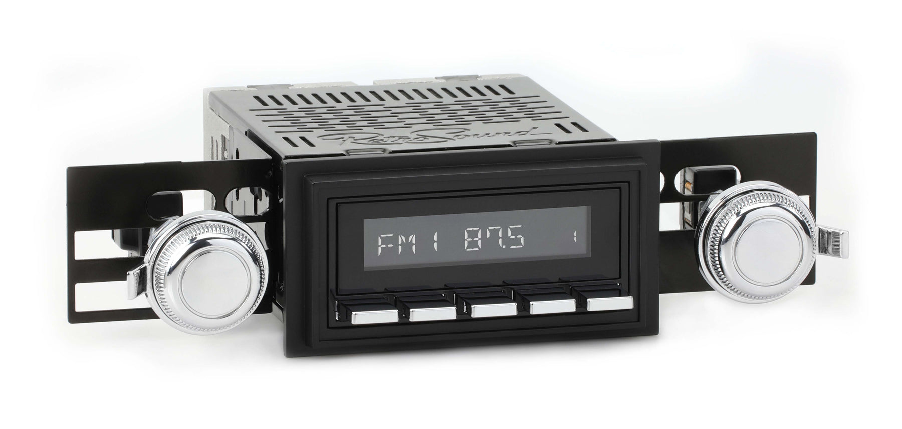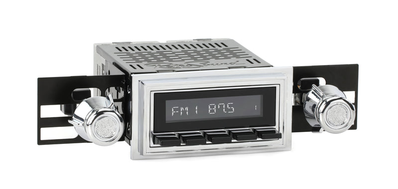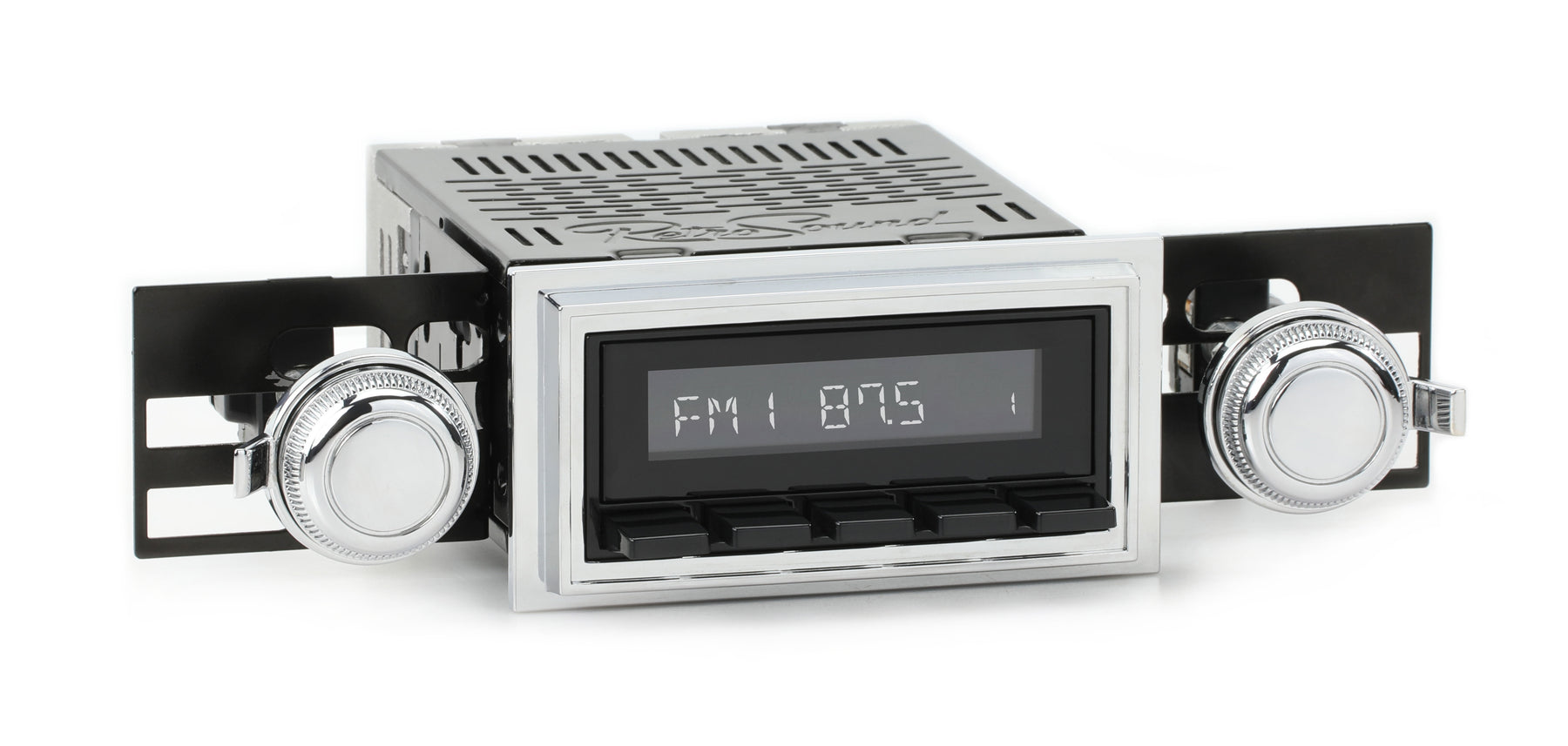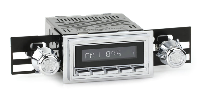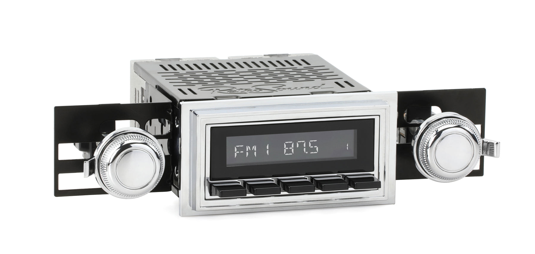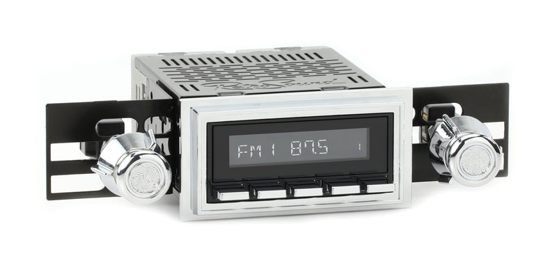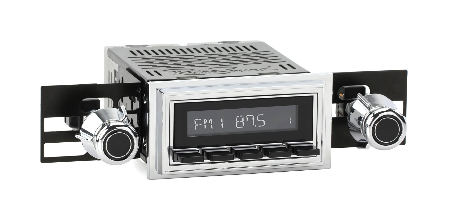 For a factory-like fit, RetroRadio includes RetroSound’s patented InfiniMount™ Brackets that can be adjusted during installation to achieve the proper width and depth of control shafts and a flush fitment of the Radio Face.