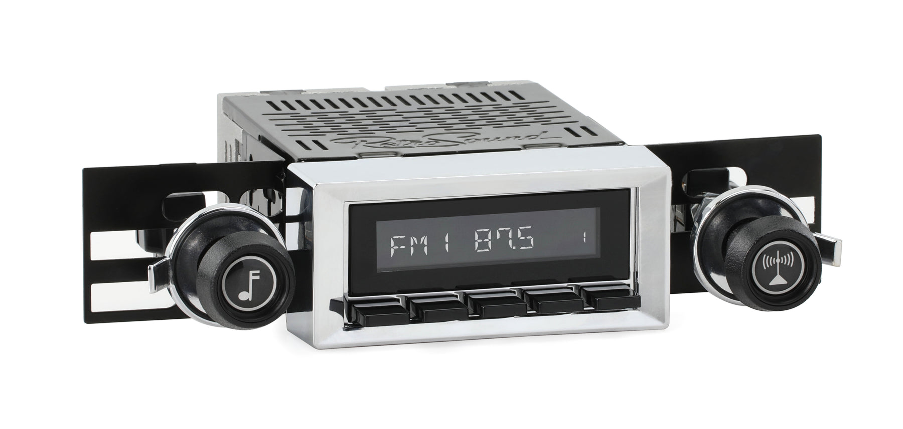 For a factory-like fit, RetroRadio includes RetroSound’s patented InfiniMount™ Brackets that can be adjusted during installation to achieve the proper width and depth of control shafts and a flush fitment of the Radio Face.