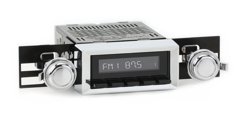 For a factory-like fit, RetroRadio includes RetroSound’s patented InfiniMount™ Brackets that can be adjusted during installation to achieve the proper width and depth of control shafts and a flush fitment of the Radio Face.