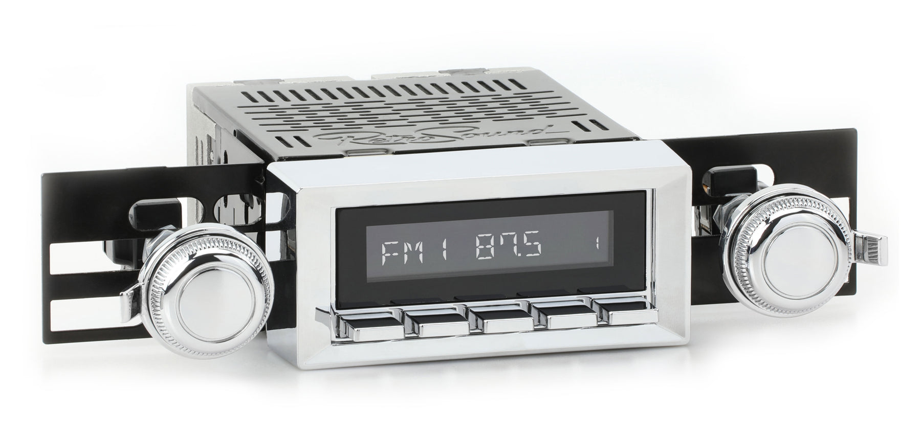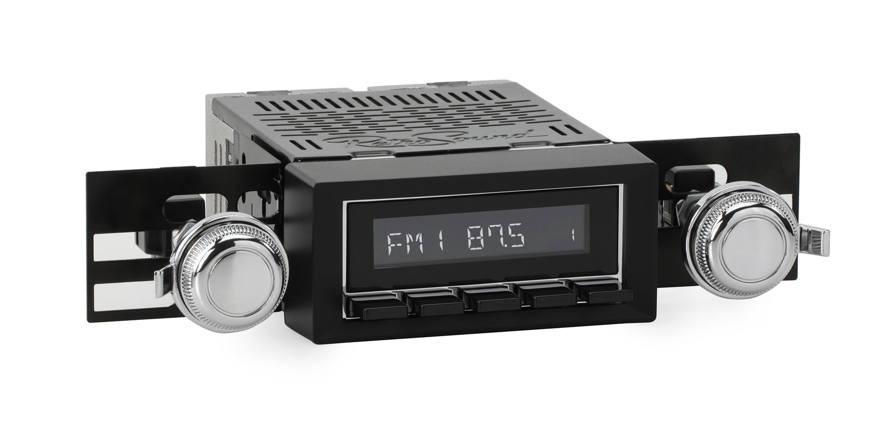 For a factory-like fit, RetroRadio includes RetroSound’s patented InfiniMount™ Brackets that can be adjusted during installation to achieve the proper width and depth of control shafts and a flush fitment of the Radio Face.