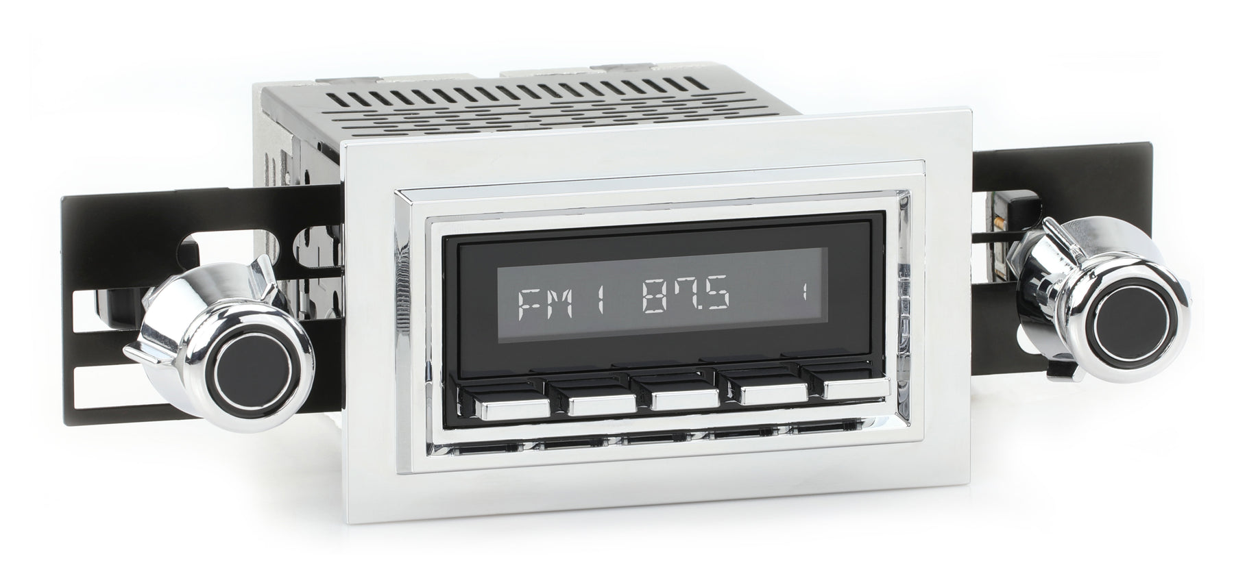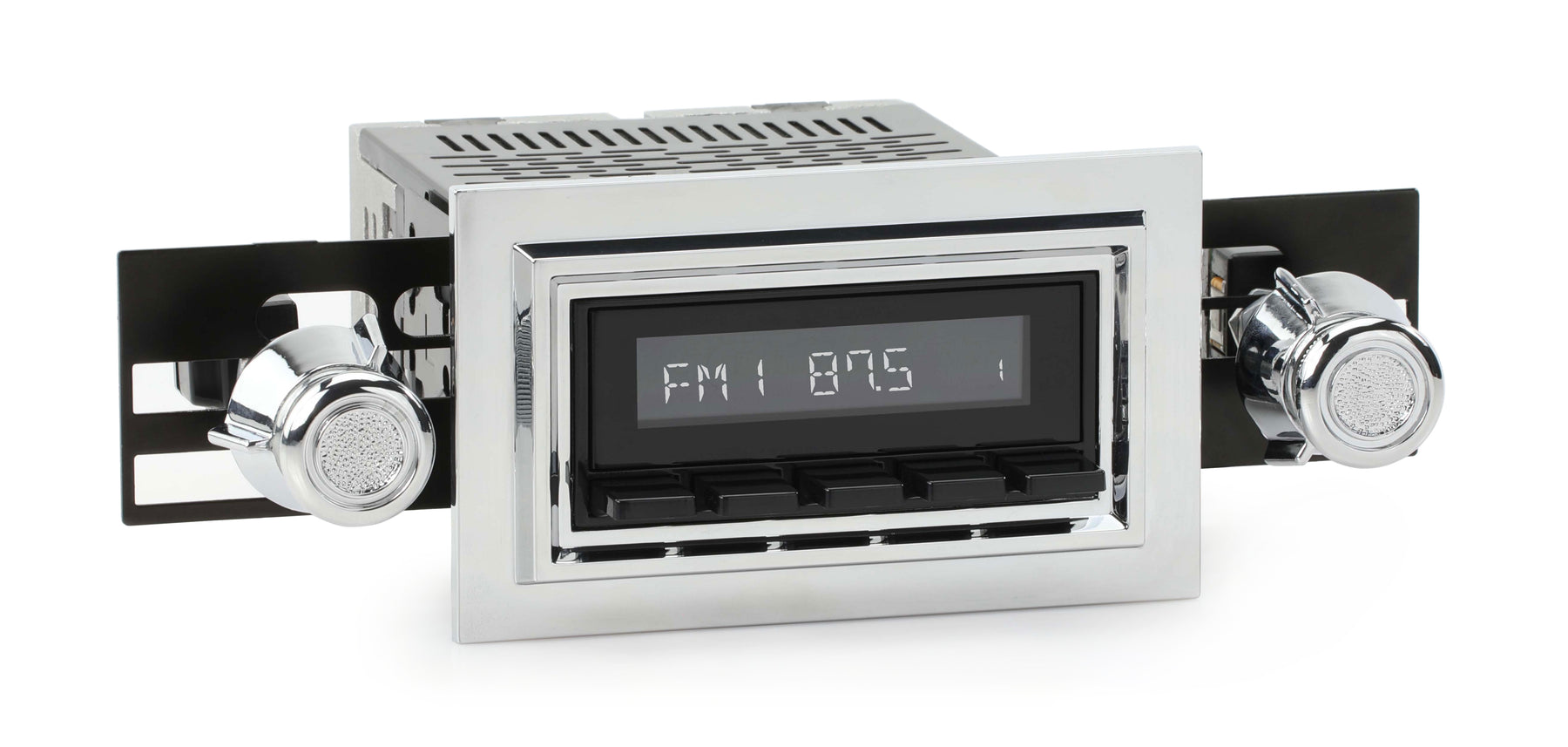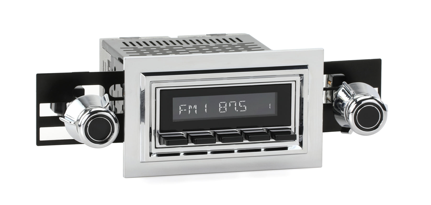 For a factory-like fit, RetroRadio includes RetroSound’s patented InfiniMount™ Brackets that can be adjusted during installation to achieve the proper width and depth of control shafts and a flush fitment of the Radio Face.