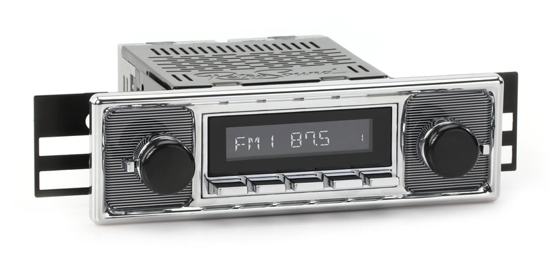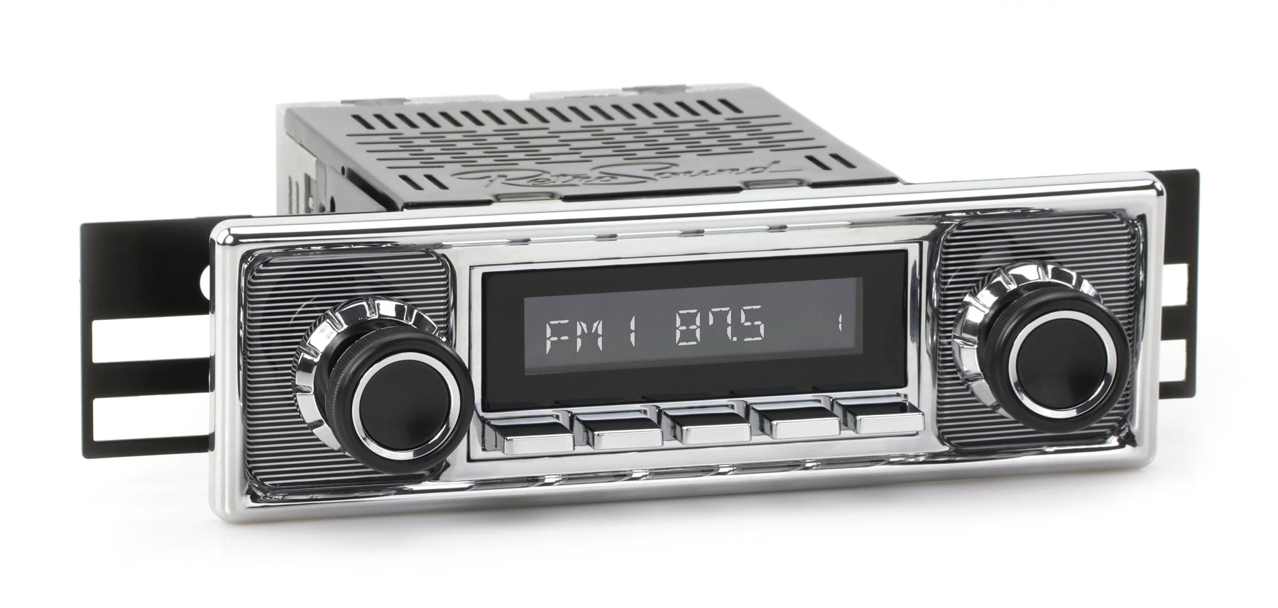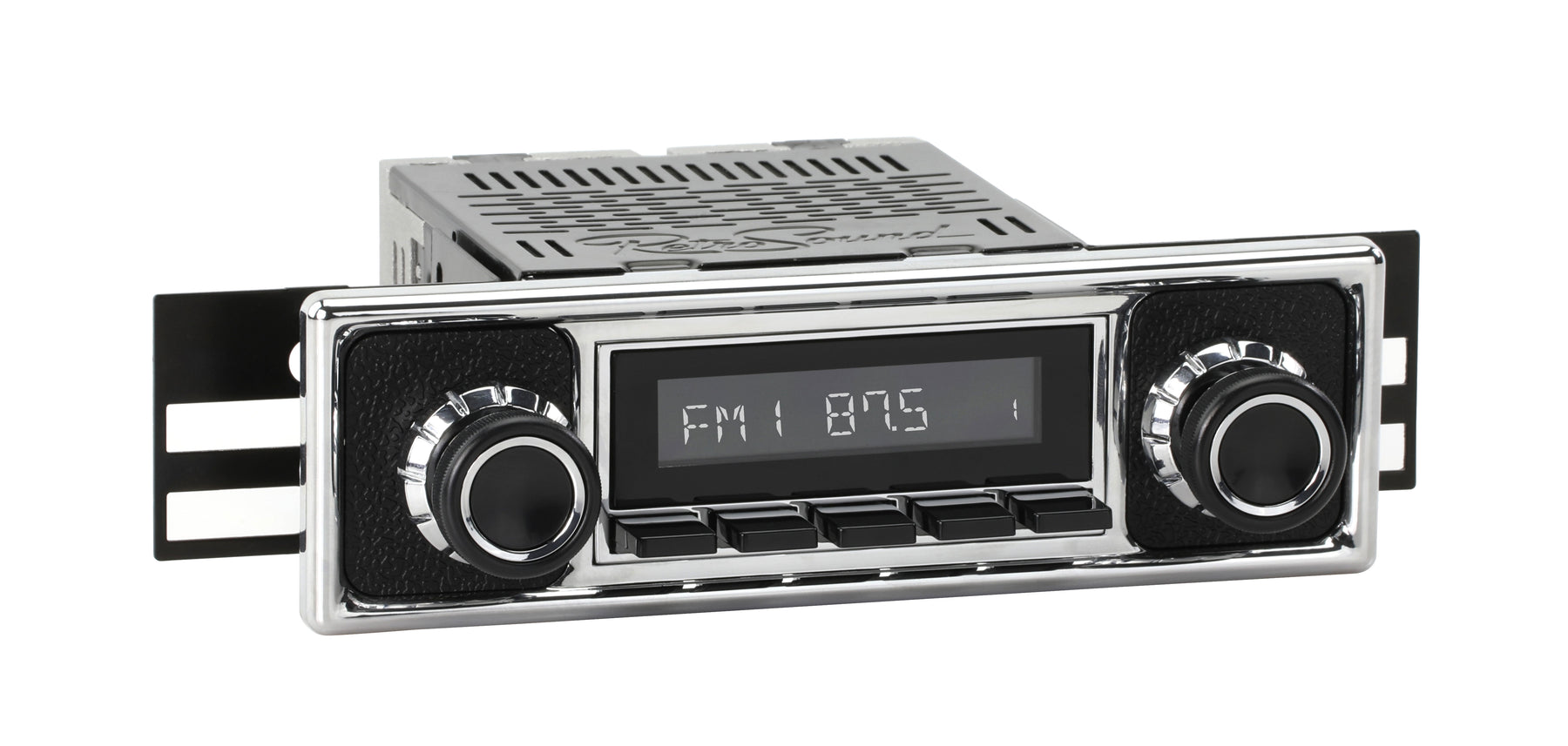 For a factory-like fit, RetroRadio includes RetroSound’s patented InfiniMount™ Brackets that can be adjusted during installation to achieve the proper width and depth of control shafts and a flush fitment of the Radio Face.