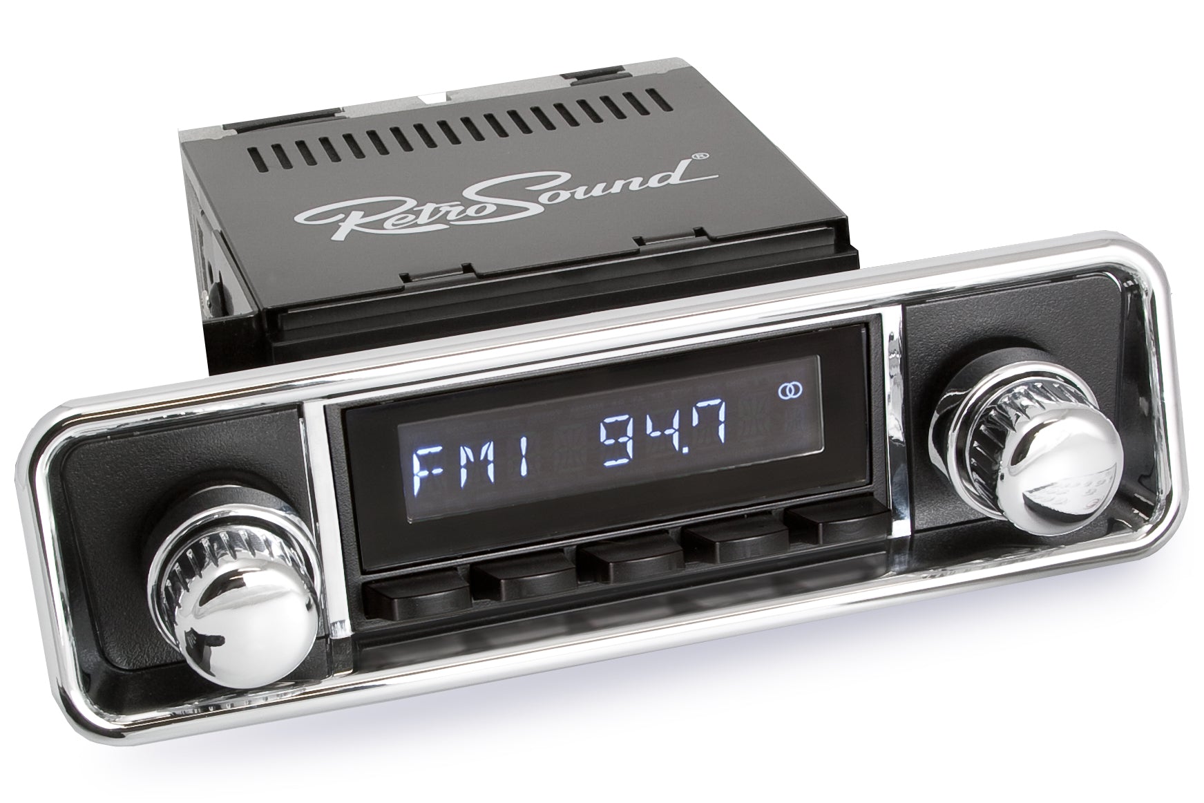 The RetroSound RetroRadio® looks like the original factory radio in your 1974-79 Volkswagen Transporter while discreetly adding all the modern audio features found in your daily driver. Classic push-buttons, replica knobs, and a period-correct bezel or faceplate combine with the radio's display to create a truly authentic look. Listen to your favorite local radio stations, stream your favorite SiriusXM® channel, or play your favorite music over Bluetooth® from your connected device, all with a classic style that blends seamlessly with your interior.