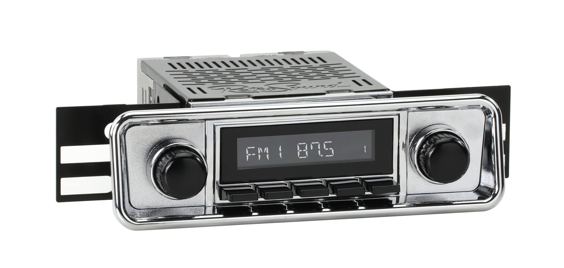 For a factory-like fit, RetroRadio includes RetroSound’s patented InfiniMount™ Brackets that can be adjusted during installation to achieve the proper width and depth of control shafts and a flush fitment of the Radio Face.