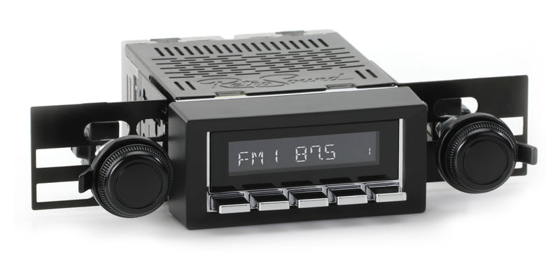 For a factory-like fit, RetroRadio includes RetroSound’s patented InfiniMount™ Brackets that can be adjusted during installation to achieve the proper width and depth of control shafts and a flush fitment of the Radio Face.